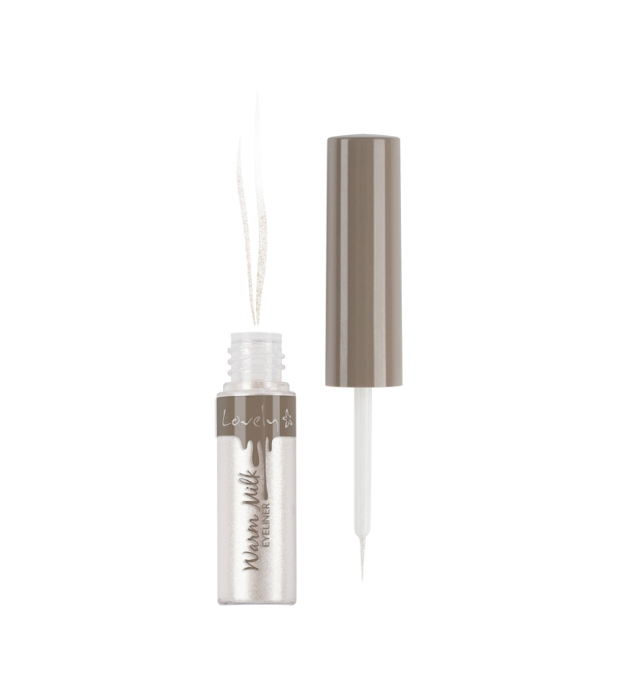 This white brush eyeliner with a metallic finish stands out for its high pigmentation, allowing precise makeup from the first dip of the brush in the container.