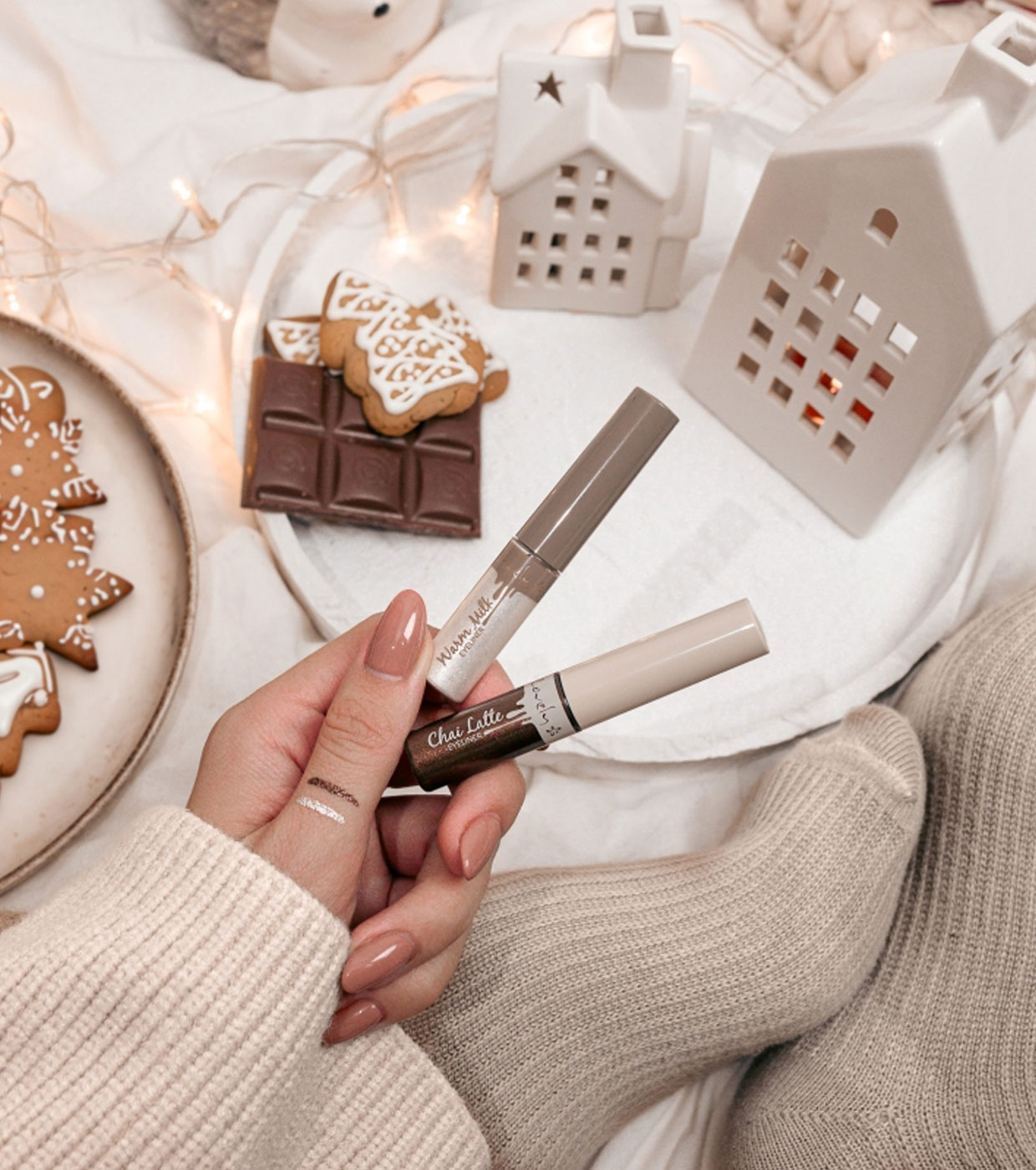 The intense white and metallic finish add luminosity to the look, highlighting the lash line and eye contour.