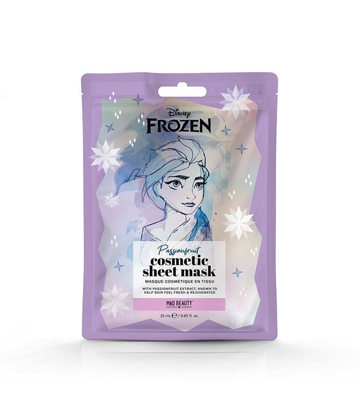 This biodegradable fiber mask inspired by Disney Frozen features a printed Elsa design and is infused with a serum with hydrating hyaluronic acid and passion fruit extract that helps leave skin feeling fresh and rejuvenated.
