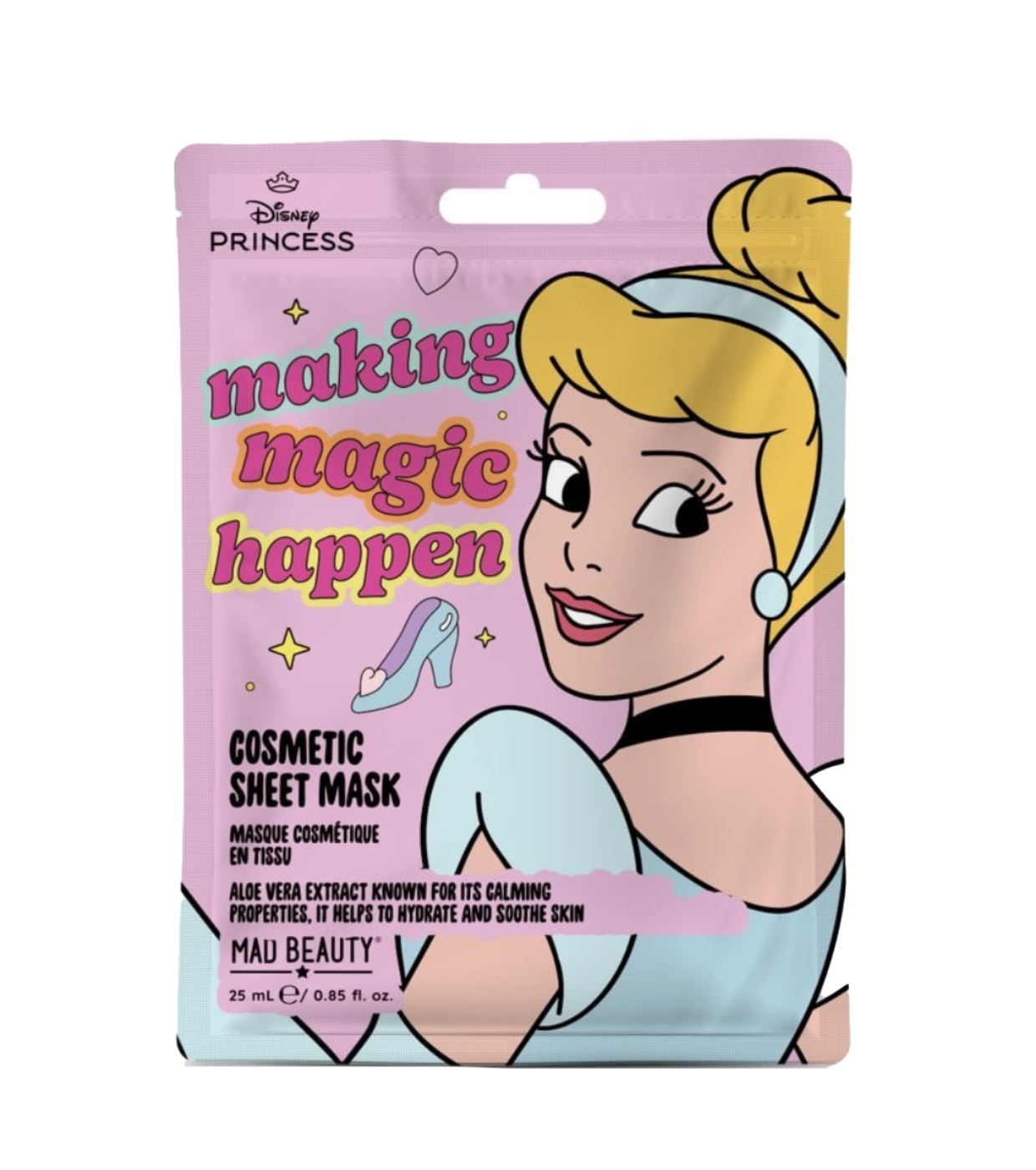 Show off dreamy skin with this Mad Beauty face mask printed with Disney Princess Cinderella, perfect for preparing your skin before makeup or relaxing it after a long day.