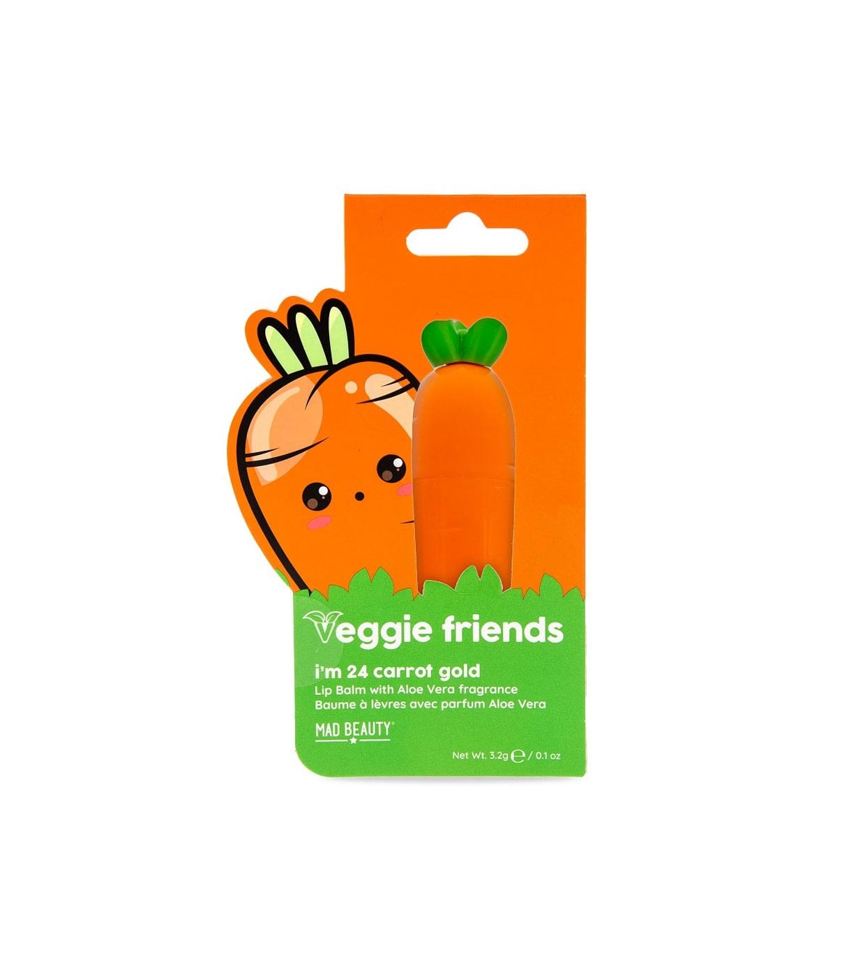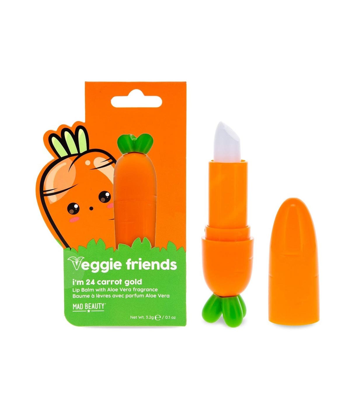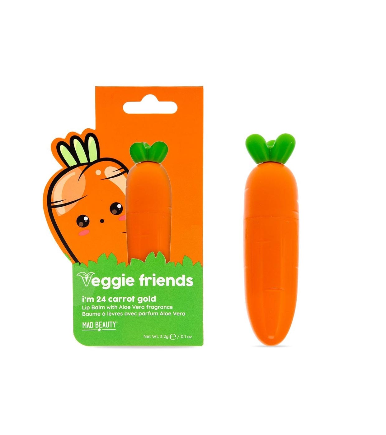 The Carrot lip balm from the Veggie Friends collection by Mad Beauty.