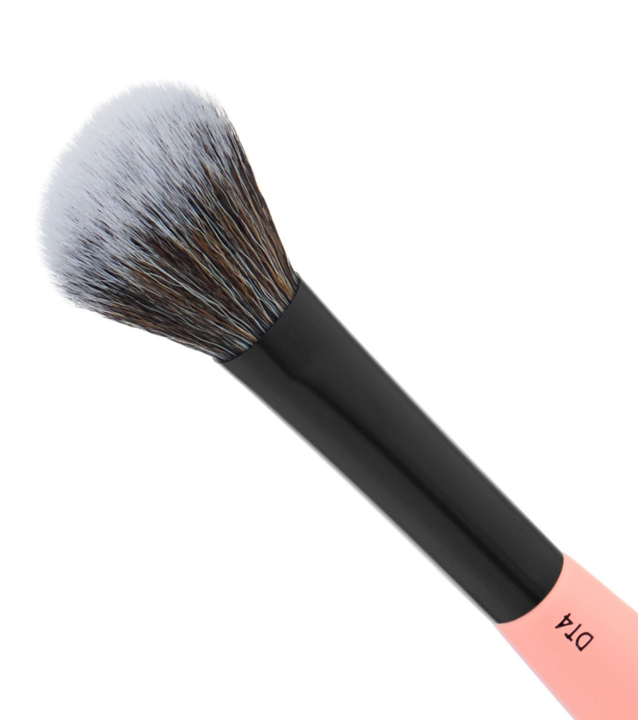- Small end: Ideal for applying powder highlighter. Perfect for setting concealer or mattifying strategic areas like the T-zone. Makes contouring the nose easier with powder products.