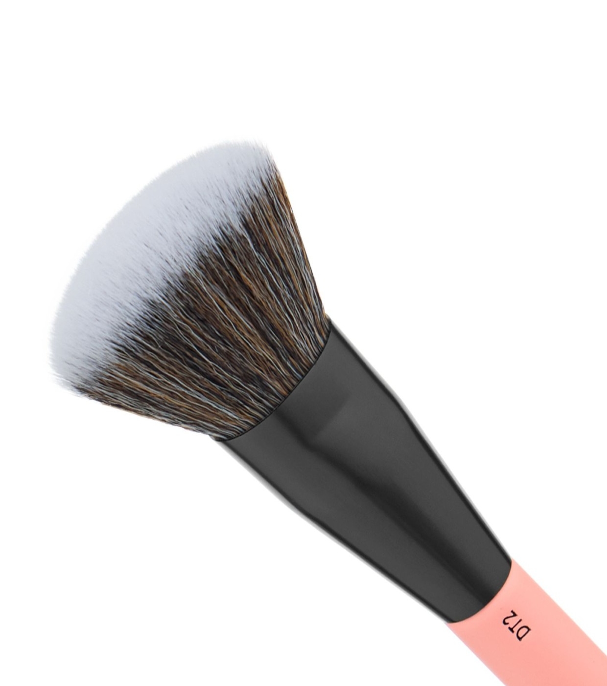 - Wide end: Apply liquid or cream foundation evenly. Blend bronzer or cream contour. Apply bronzing blush to larger areas such as cheekbones or nose.