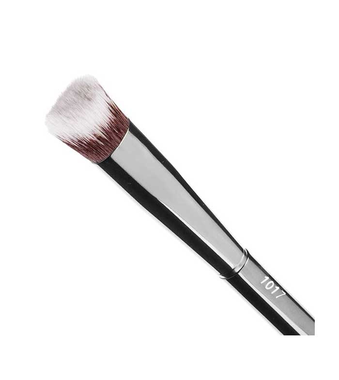 Unique, multifunctional brush to cover all areas of the face with liquid, cream or powder makeup.