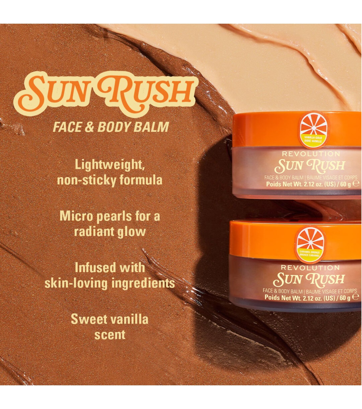 Achieve a radiant glow on your face and body with the Sun Rush Illuminating Body Balm from Revolution..