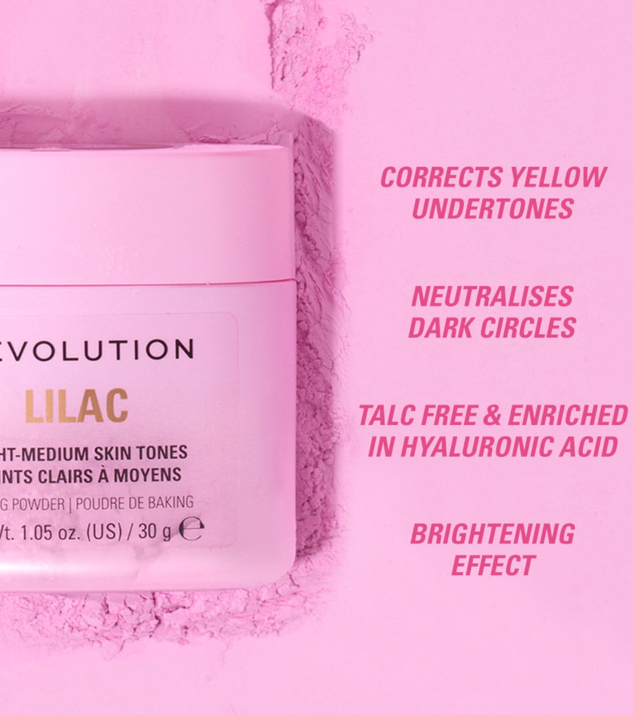 The Revolution Loose Baking Powder is the secret to long-lasting, shine-free, and blurred makeup.