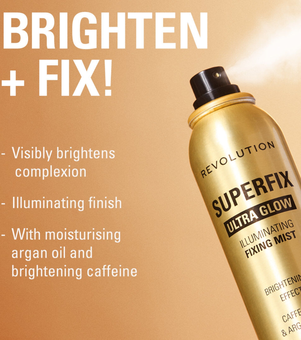 Your favorite super-fix formula now with a glow finish. Revolution Revolution Setting Spray sets makeup and leaves a luminous finish thanks to its shimmering pearlescent particles that instantly illuminate the face.