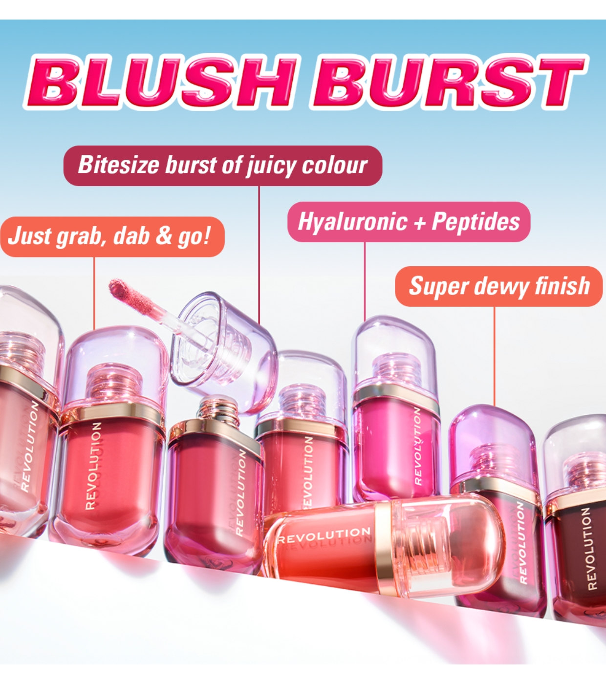 Get juicy, plump, and hydrated cheeks with Makeup Revolution's new Super Dewy Blush Burst liquid blush .