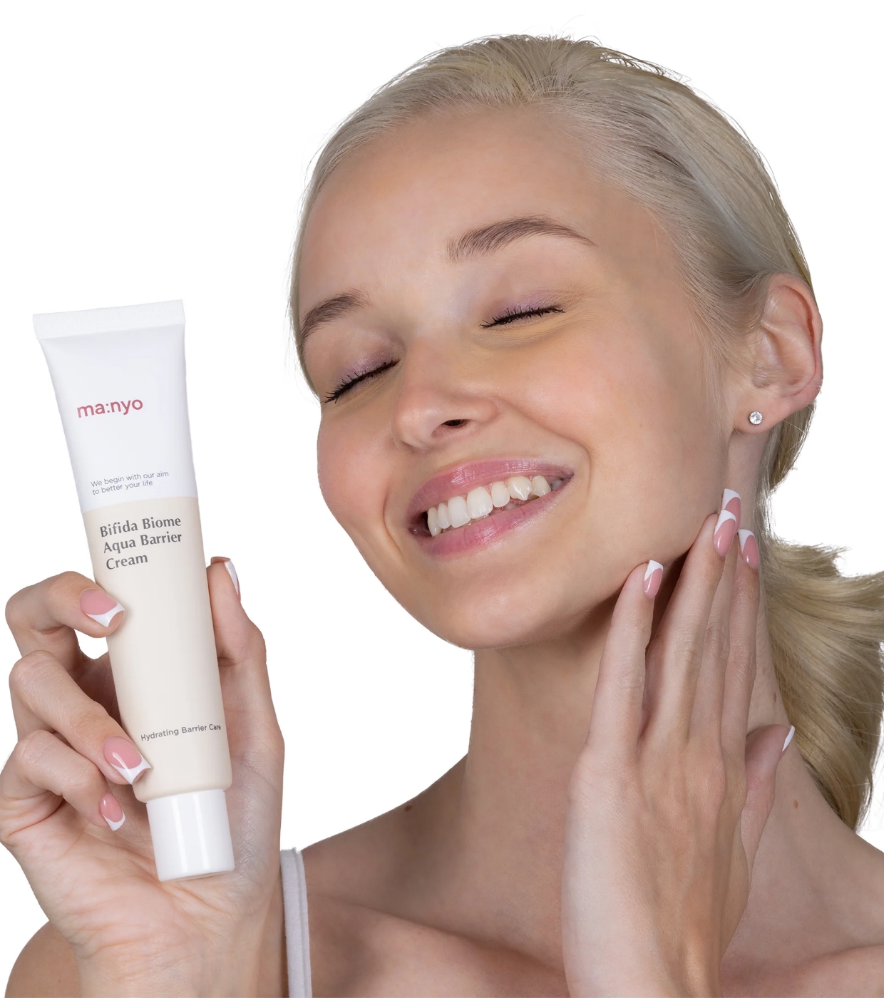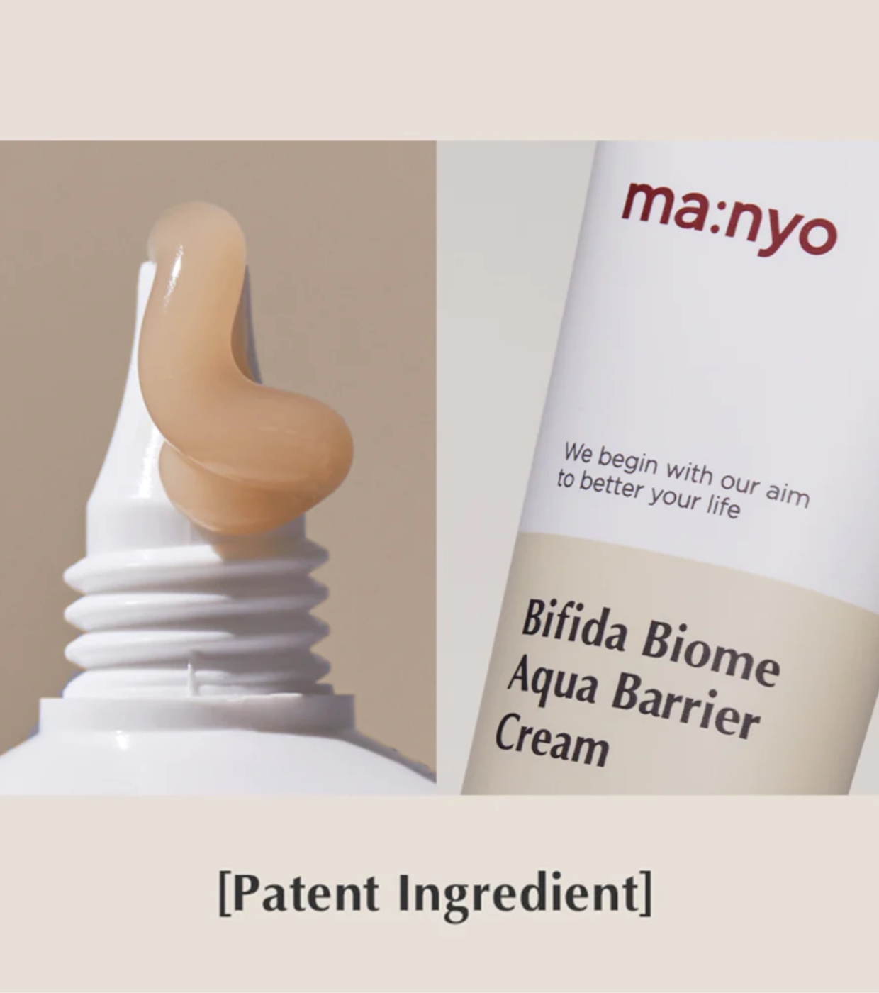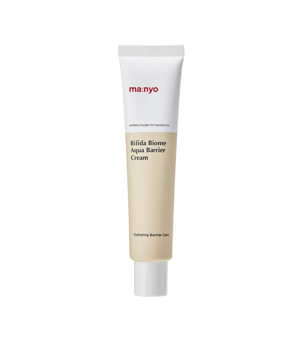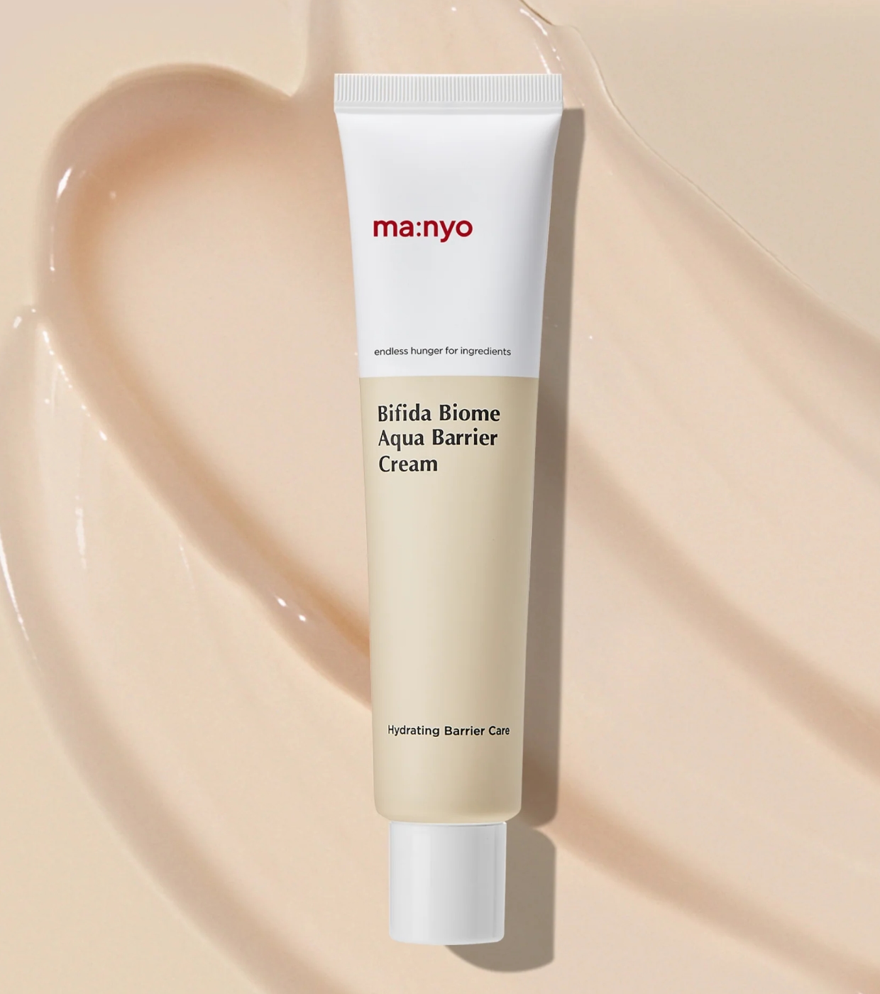 Manyo Bifida Biome Aqua Barrier Cream is a lightweight moisturizer that strengthens the skin barrier and provides deep, long-lasting hydration.