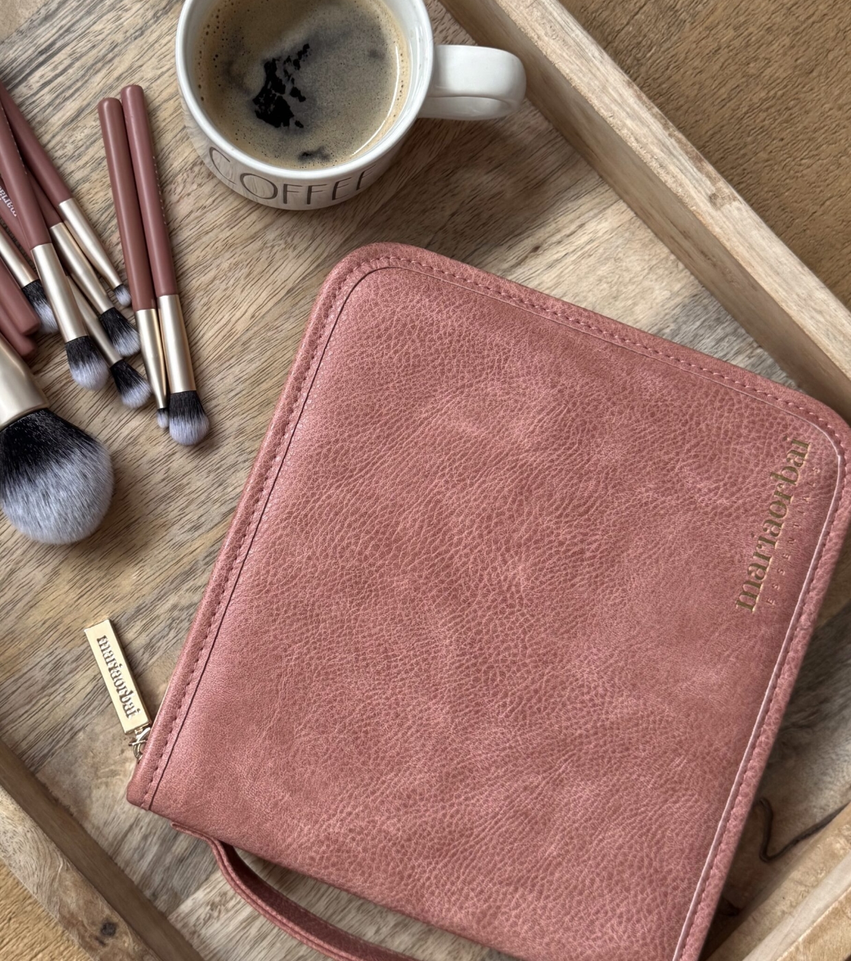 The ideal accessory for makeup artists, travelers, or those who love organization. Combine functionality and elegance with this unique brush bag, designed to go everywhere you go.