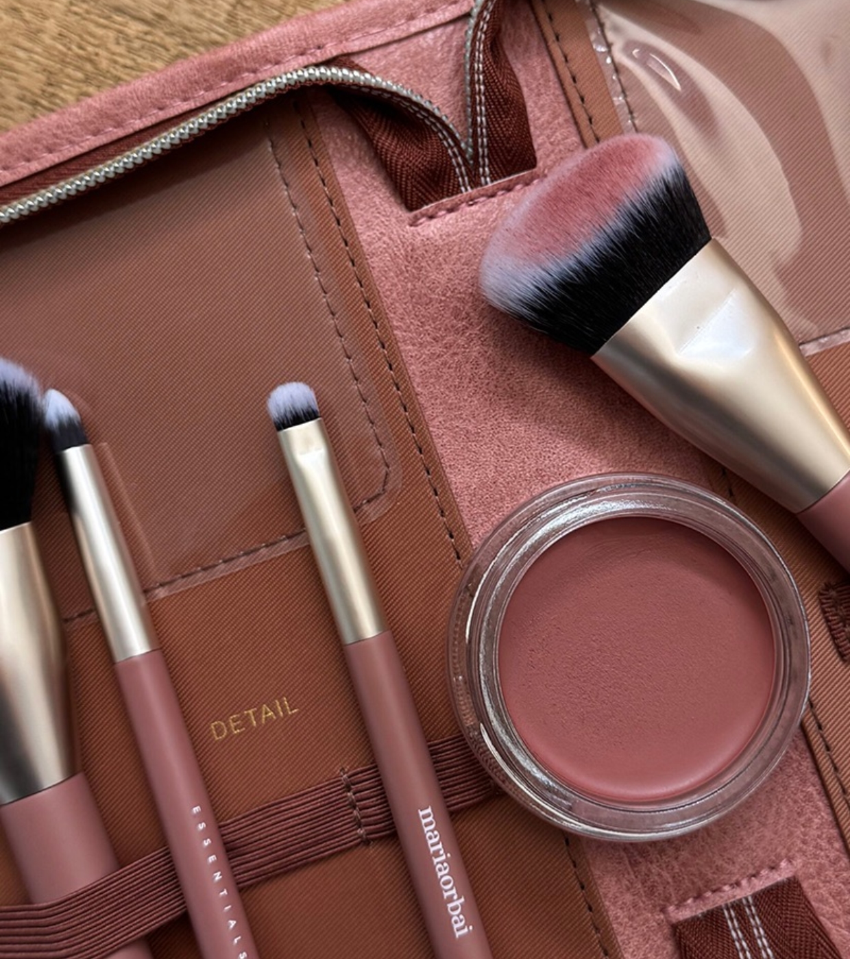 Discover the Brownie Pink makeup brush bag by Maria Orbai , perfect for your makeup brushes, designed to keep your favorite tools organized, protected, and always at hand.