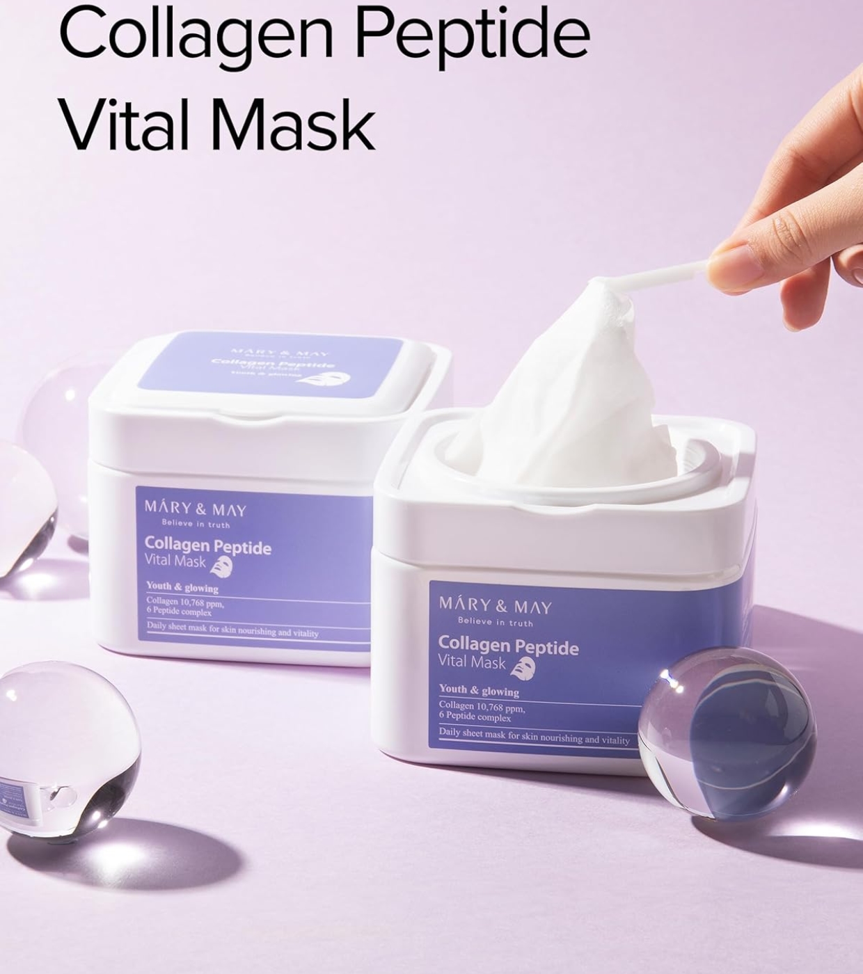 Mary & May Collagen Peptide Rejuvenating Mask is an ultimate skincare solution with anti-aging and moisturizing properties.