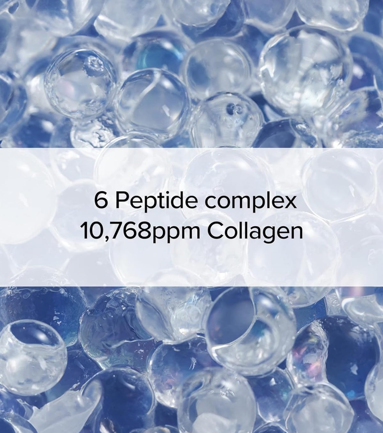 - Anti-Aging Effect: Collagen: Promotes skin elasticity and firmness, helping to reduce the appearance of wrinkles and fine lines; Peptides: Six different types that stimulate collagen production and improve cell regeneration.