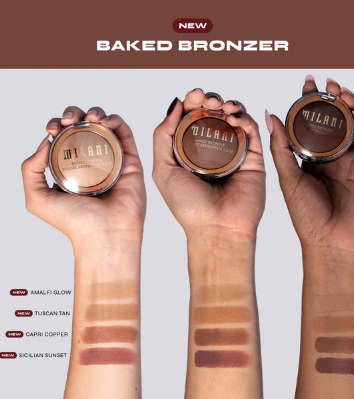 Baked Bronzer by Milani provides a natural warmth with a finish that melts into the skin, without a flat effect or pasty texture.