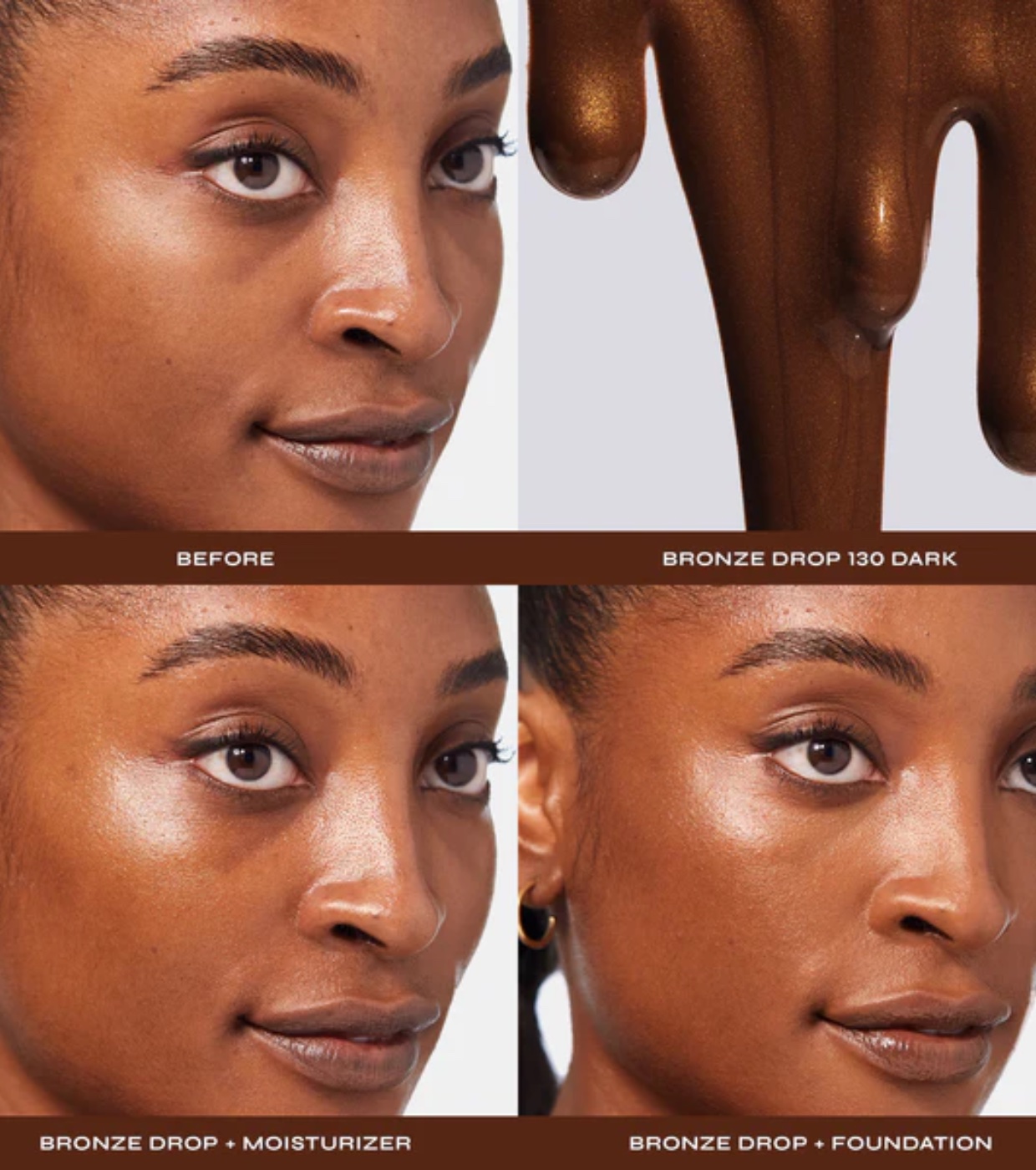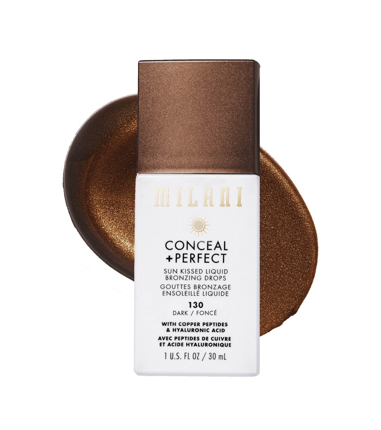 Get that glow with Milani Milani Milani Liquid Bronzing Drops , which provide sheer, lightweight, ultra-blendable coverage, serious hydration, and a just-walked-on-vacation glow (beach or not, we won't tell).