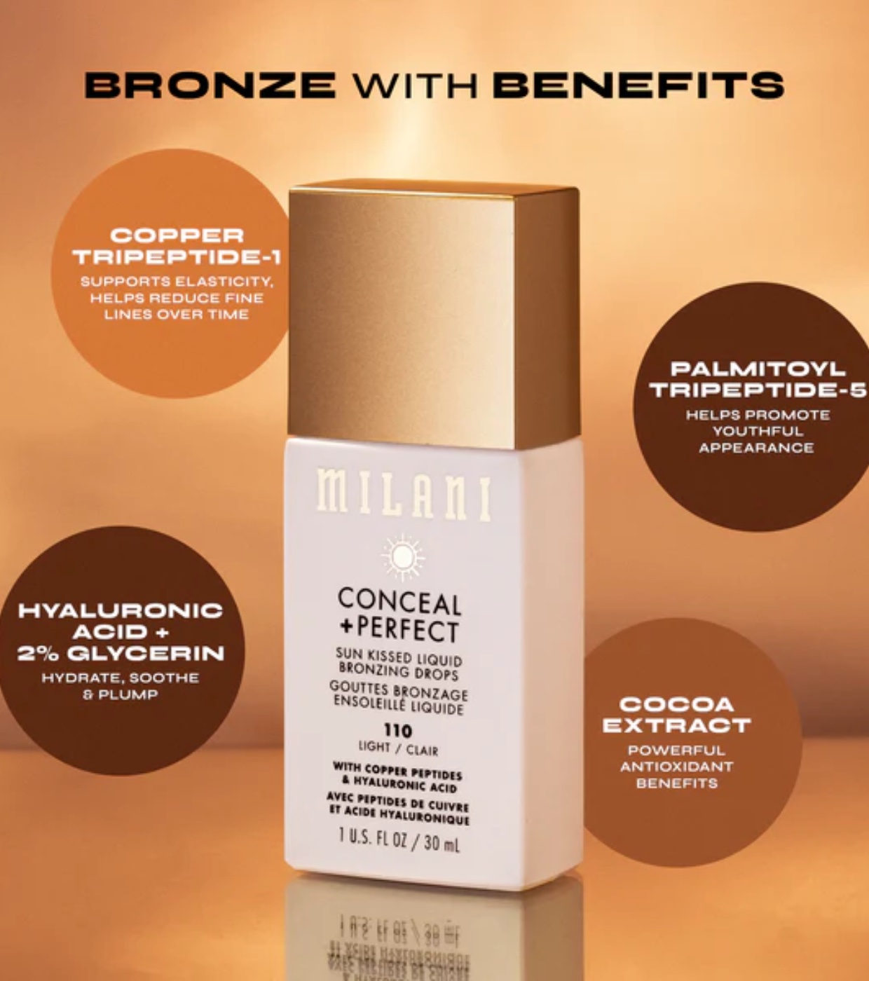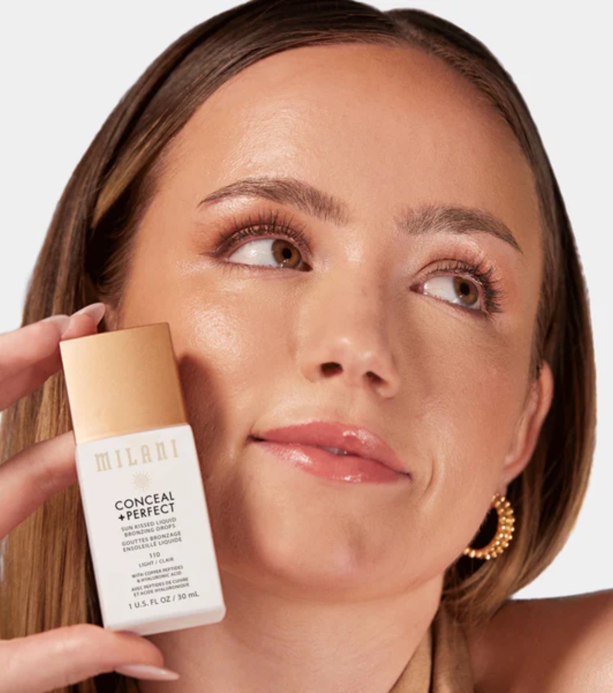 Get that glow with Milani Milani Milani Liquid Bronzing Drops , which provide sheer, lightweight, ultra-blendable coverage, serious hydration, and a just-walked-on-vacation glow (beach or not, we won't tell).