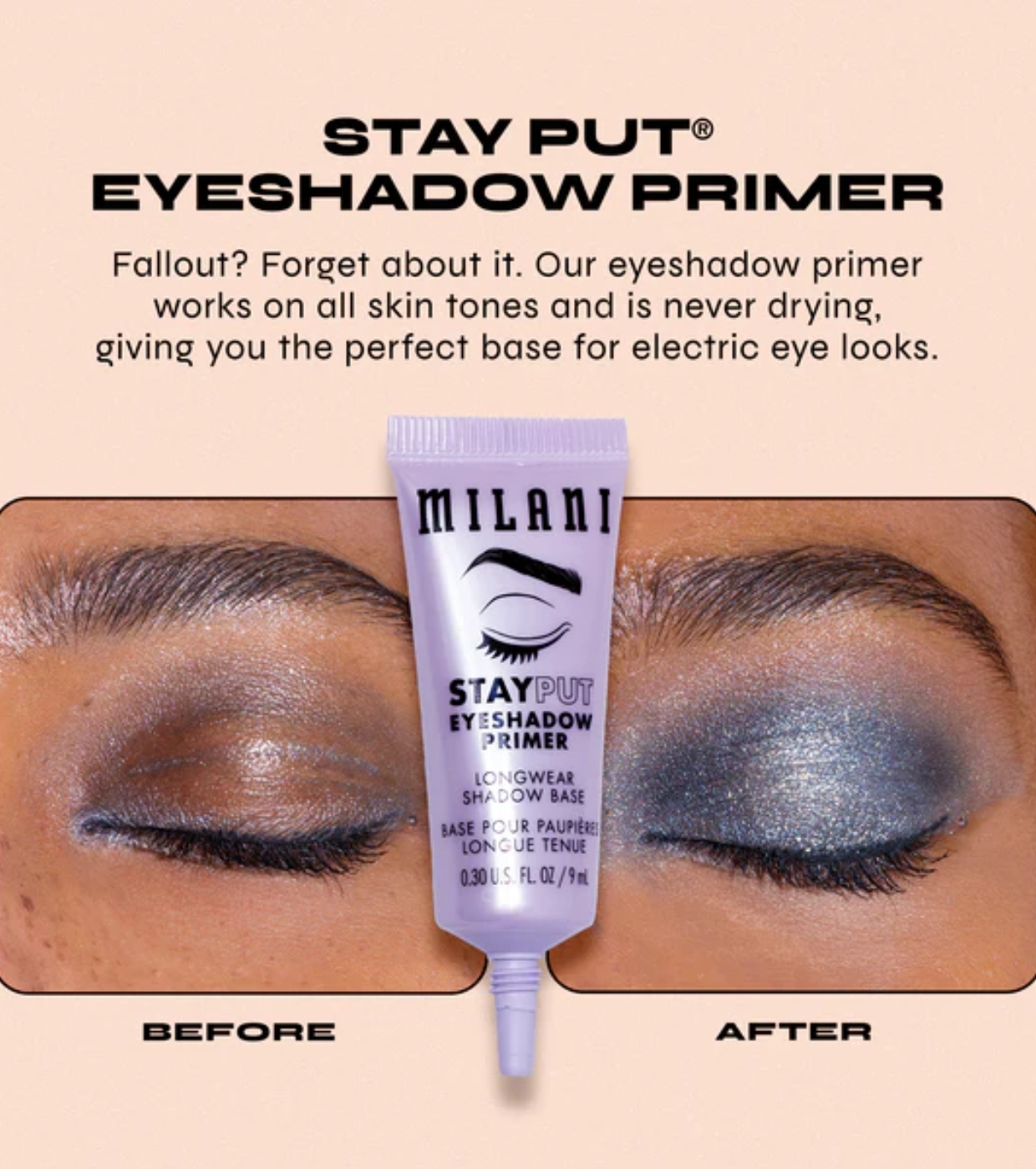 Discover the secret to maximum pigmentation with the Stay Put eyeshadow primer from Milani .