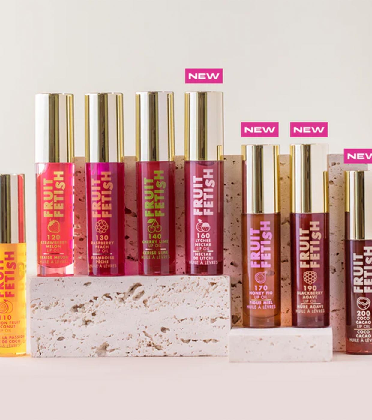 Fruit Fetish lip oils have been formulated with fruit extracts and vitamin E to nourish and moisturize lips, giving them an ultra-comfortable feel.