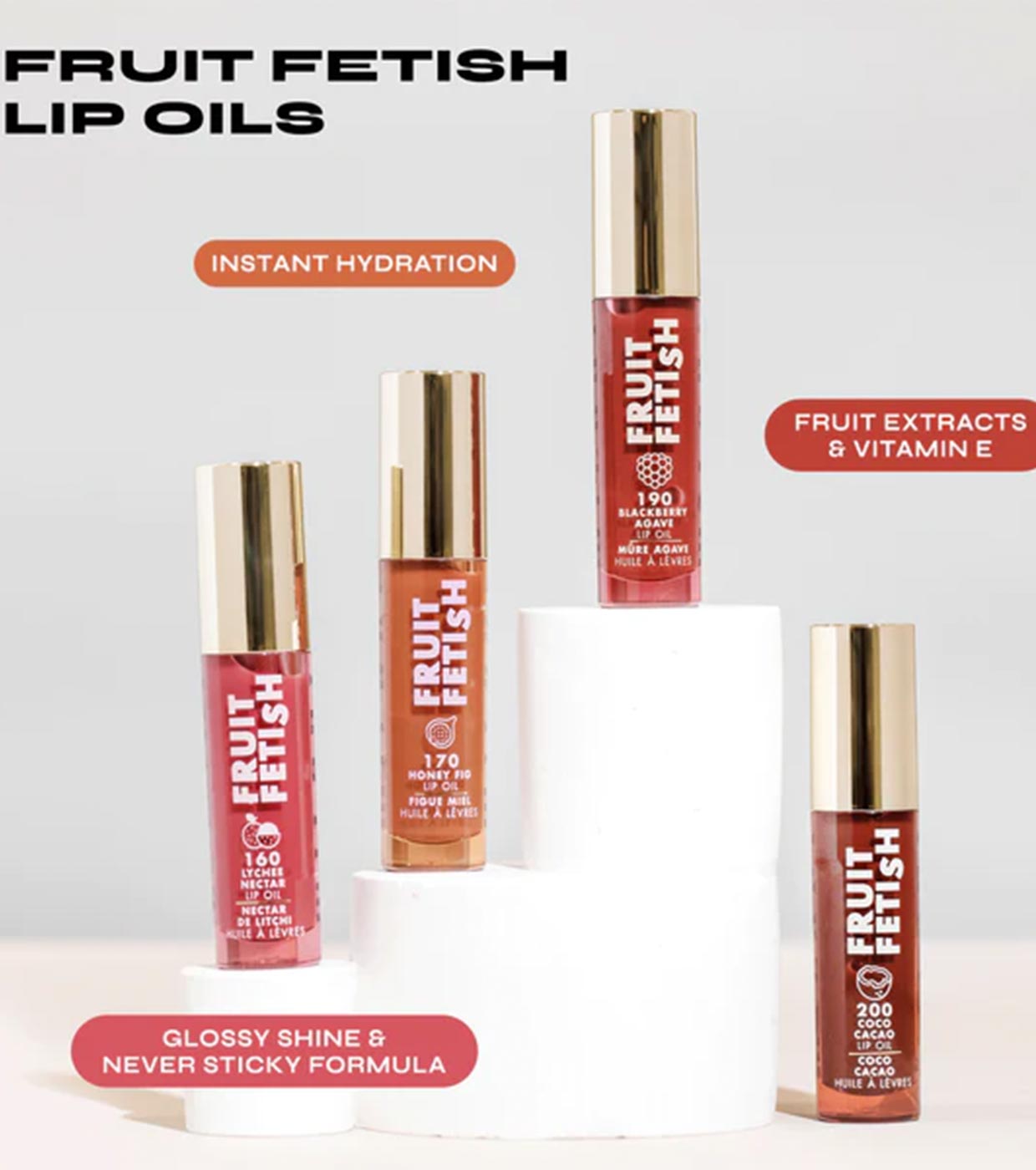 Fruit Fetish lip oils have been formulated with fruit extracts and vitamin E to nourish and hydrate lips, giving them an ultra-comfortable sensation.