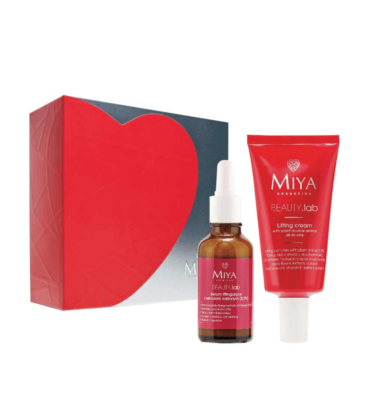 Discover the BEAUTY.lab Lift me Up anti-aging facial care set from Miya Cosmetics , a natural alternative to retinol designed to firm, hydrate and reduce wrinkles without causing irritation.
