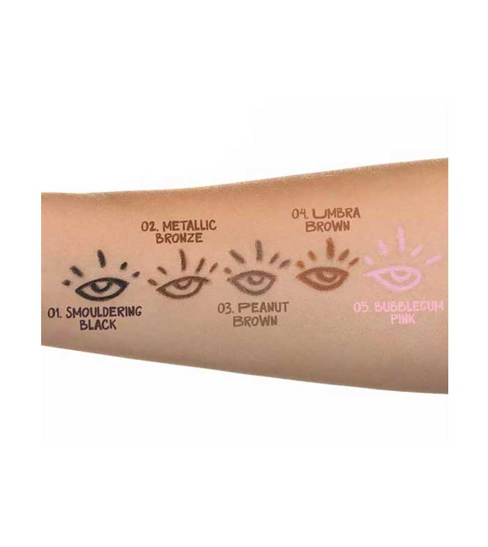The collection consists of five colours: a classic black, three browns and a very original bubble gum pink. Four of them with a matte finish and one metallic that you will love. Use them separately or together for bold looks.