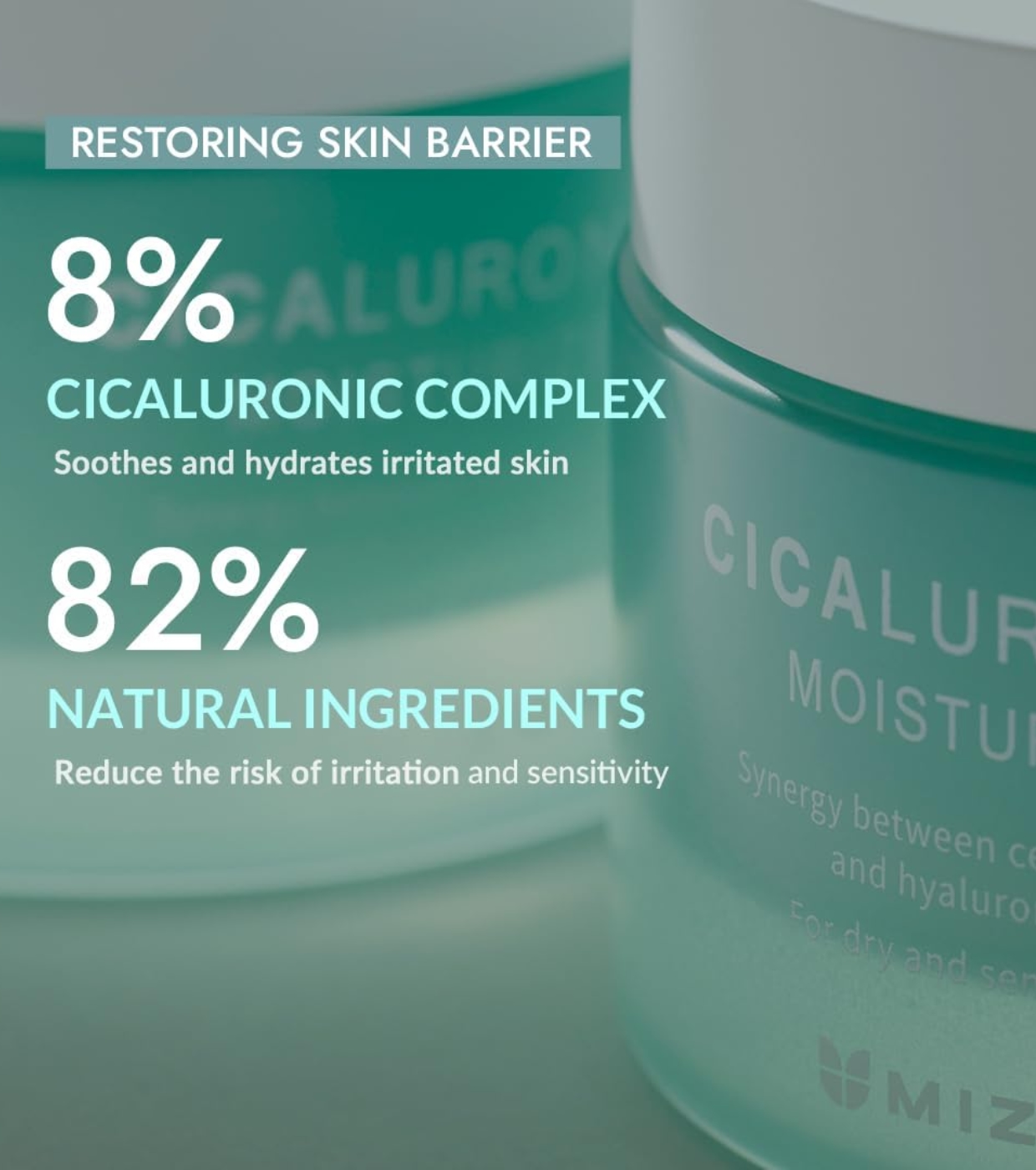 Mizon Cicaluronic Moisture Cream is a rich textured moisturizer formulated for dry and sensitive skin that needs intense nourishment and deep repair.