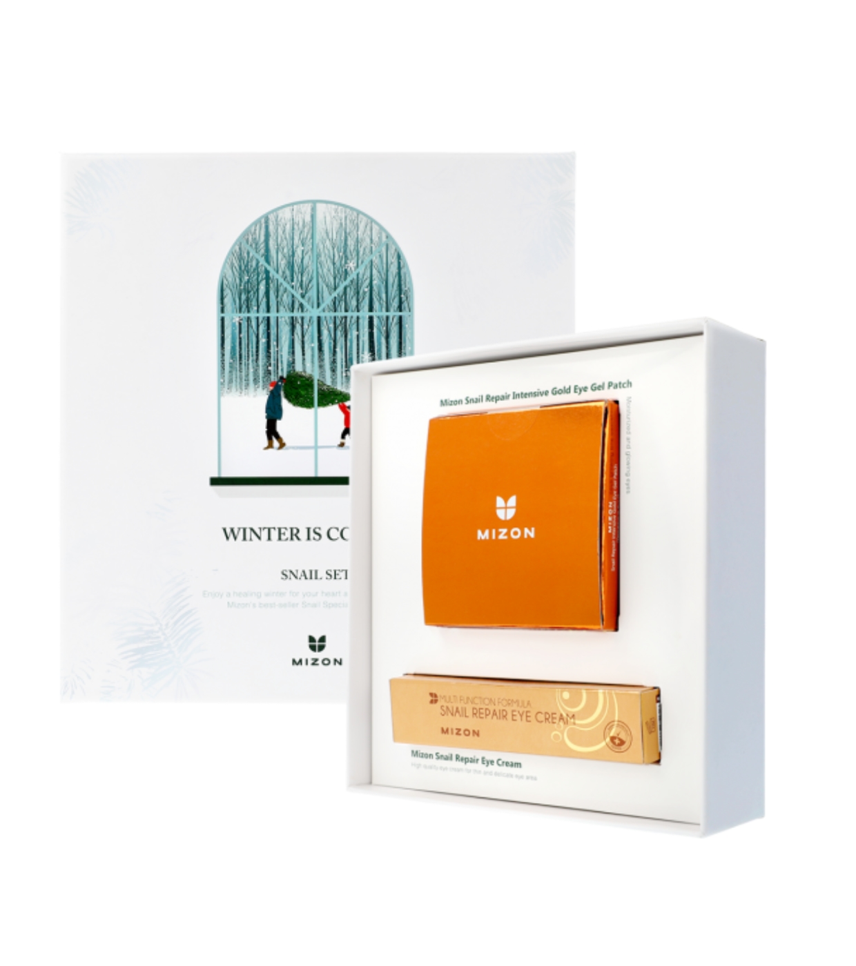The Snail Holiday Set by MIZON brings together the most iconic products of the Snail line, recognized for its high regenerative, soothing and firming power.
