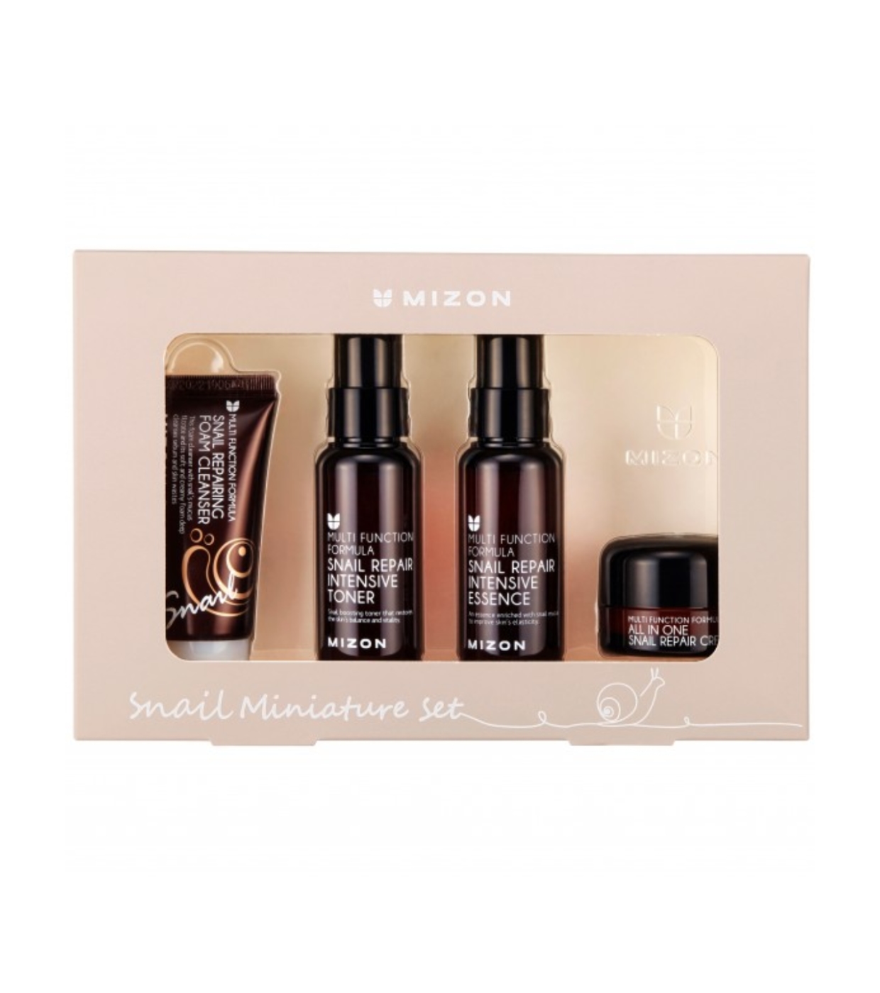 Discover the best of Mizon with the Snail Miniature Set , a mini-size kit that brings together the most iconic products from the snail line, ideal for trying the complete routine or taking on a trip.