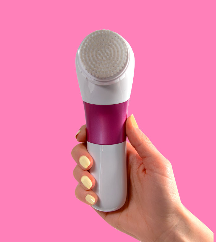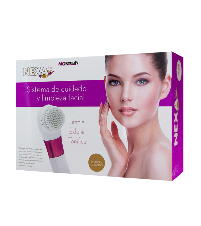 You can use your favorite makeup remover or soap to clean your face with one of 3 brush heads included with the Nexa Lite system. It also includes a sponge head for applying your cream products in a more effective way and a head massage can relax your desired areas of the face.