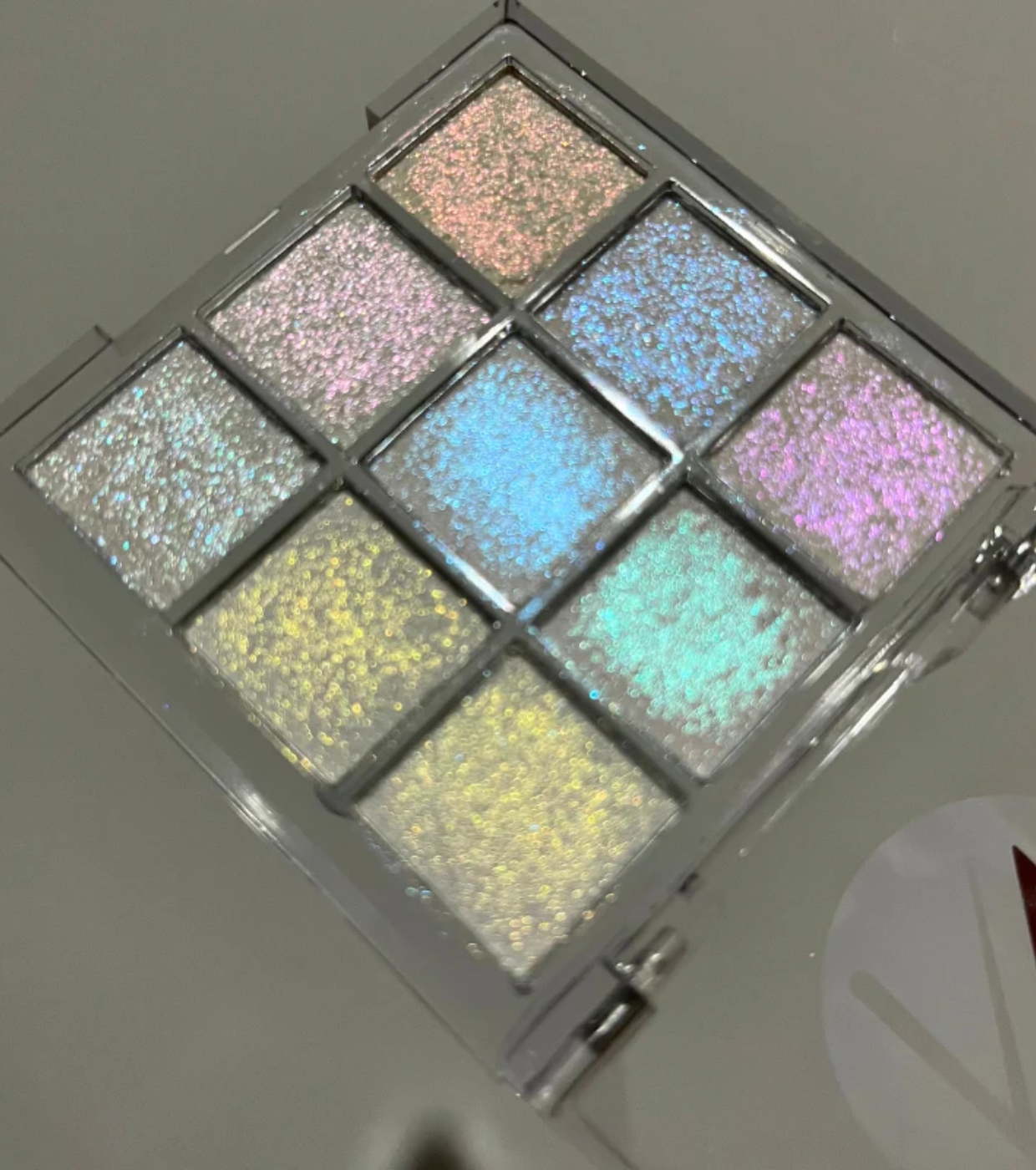 Discover the Naba Cosmetics Naba Cosmetics eye pigment palette with these 9 highly pigmented creamy pigments, with a chameleon, iridescent and holographic finish.