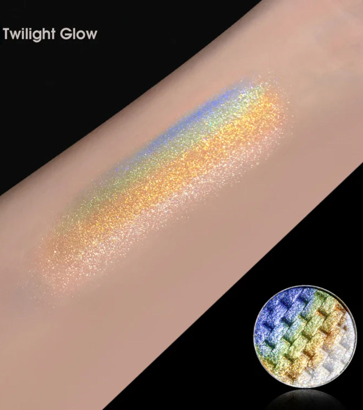 It changes hue with every movement, revealing iridescent sparkles ranging from pink to lime green, sky blue and iridescent gold, creating a unique rainbow effect.