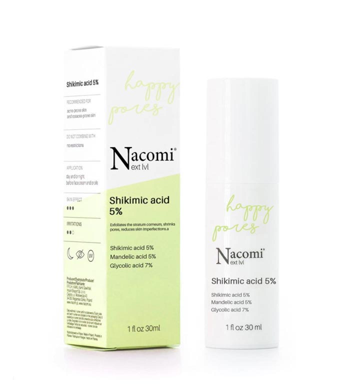 Aqua, Glycolic Acid, Mandelic Acid, Shikimic Acid, Butylene Glycol, Glycerin, Sodium Hydroxypropyl Starch Phosphate, Sodium Hydroxide, Enantia Chlorantha Bark Extract, Oleanolic Acid, Cellulose, Hectorite, Xanthan Gum, Dehydroacetic Acid, Benzyl Alcohol.