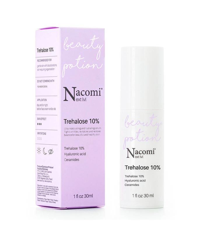 The combination of trehalose and hyaluronic acid not only moisturizes the skin but also has an anti-wrinkle action giving it a healthy appearance.