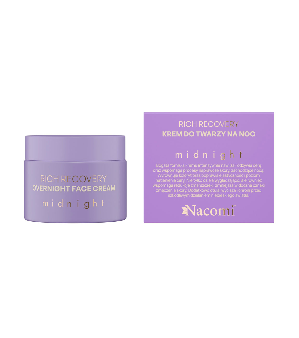 Experience a complete nighttime renewal for your skin with Nacomi Rich Recovery Midnight Facial Cream .