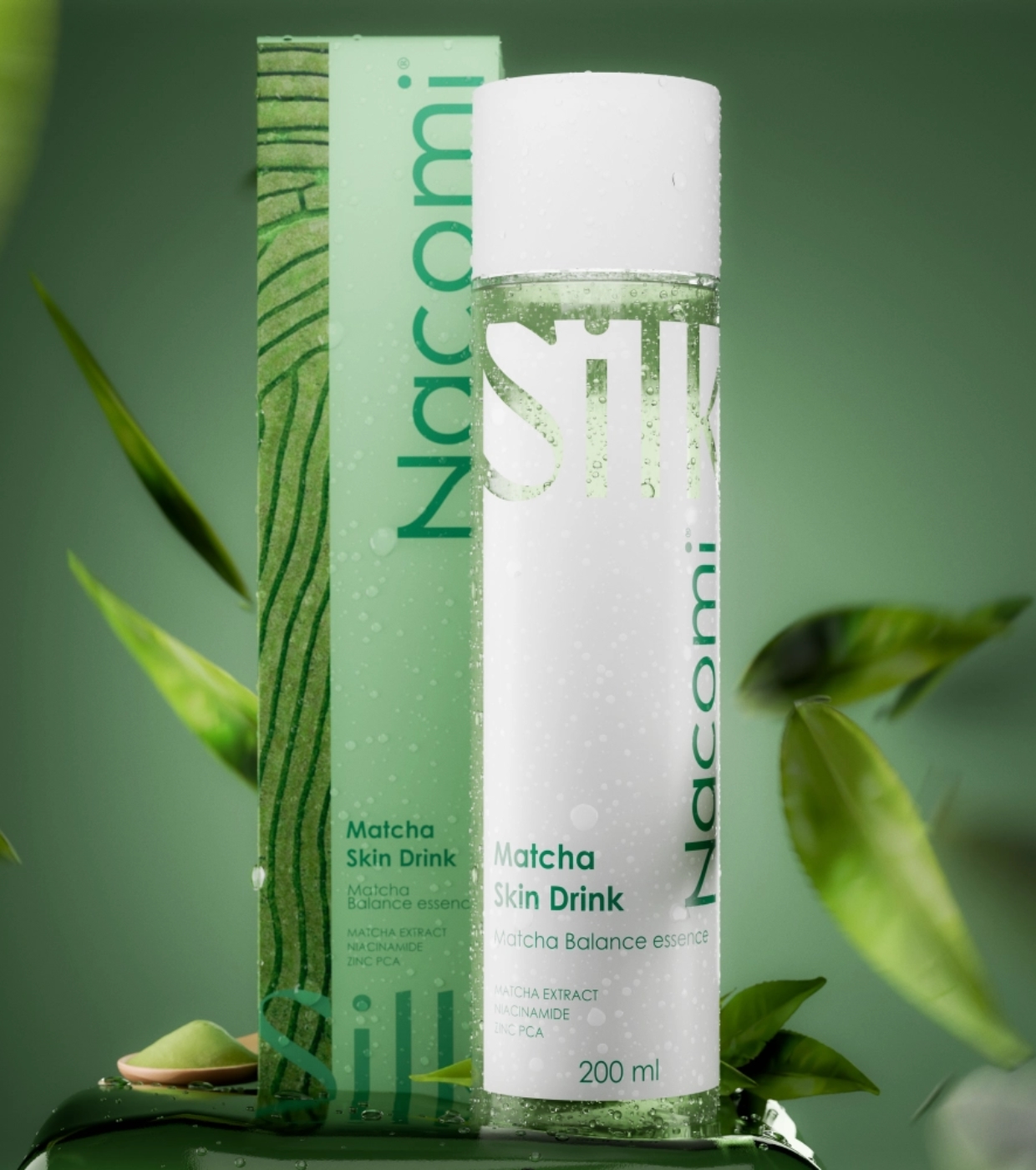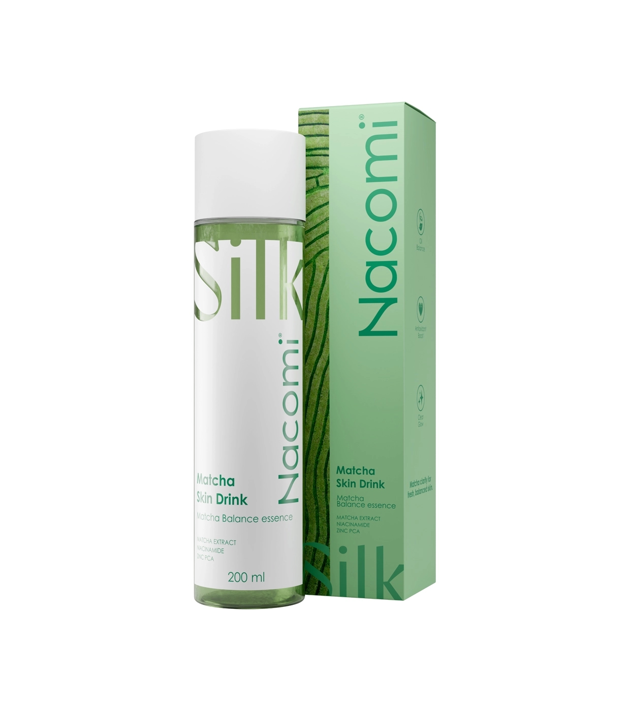 The facial essence Matcha Skin Drink Nacomi combines balancing and softening active ingredients that help restore a fresh and even appearance to the face.