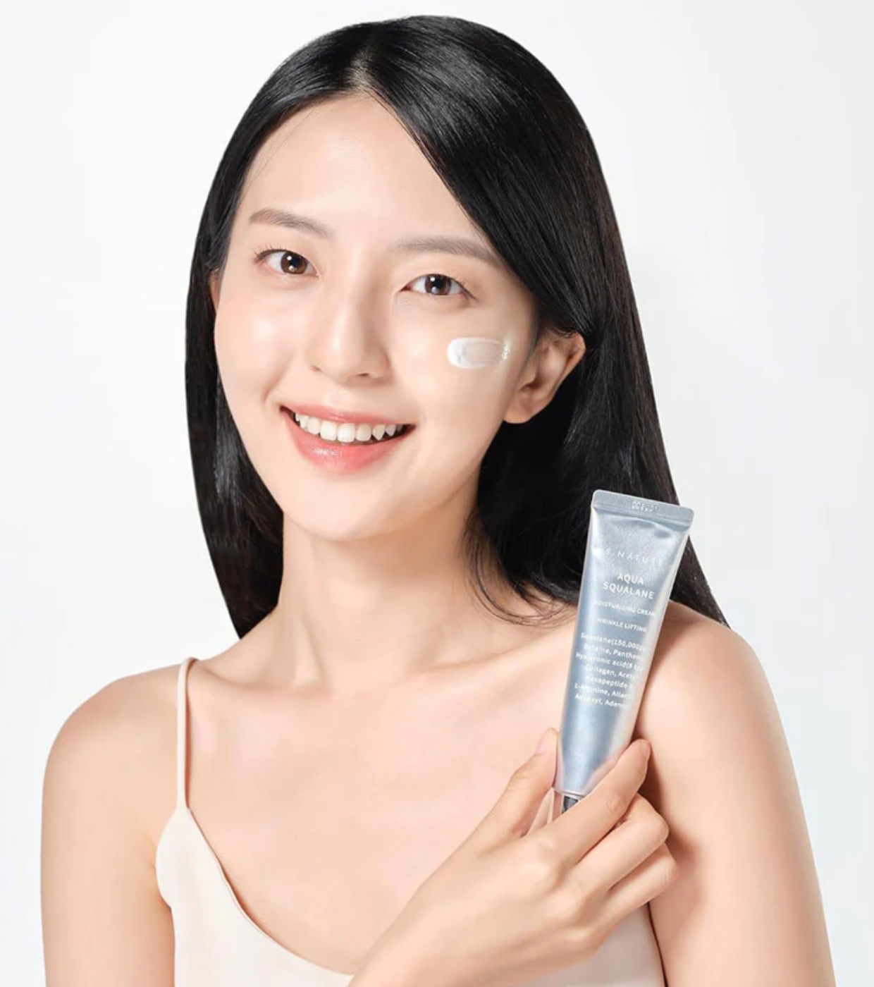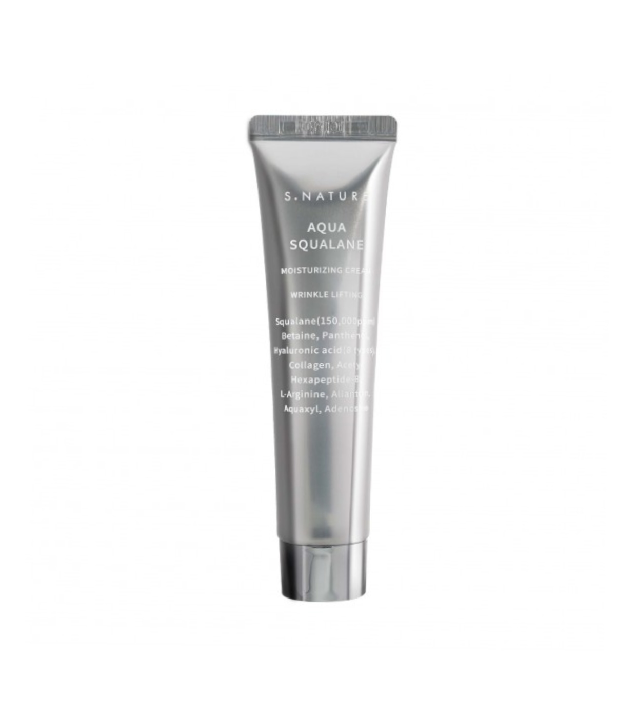S.NATURE's Aqua Squalane Moisturising Cream is a moisturizing and firming face cream formulated to provide deep hydration, improve elasticity, and protect the skin from dryness.