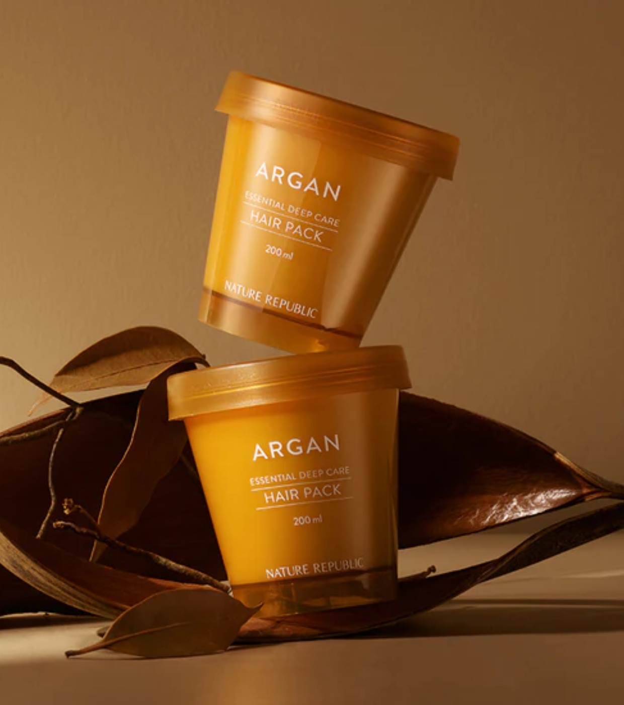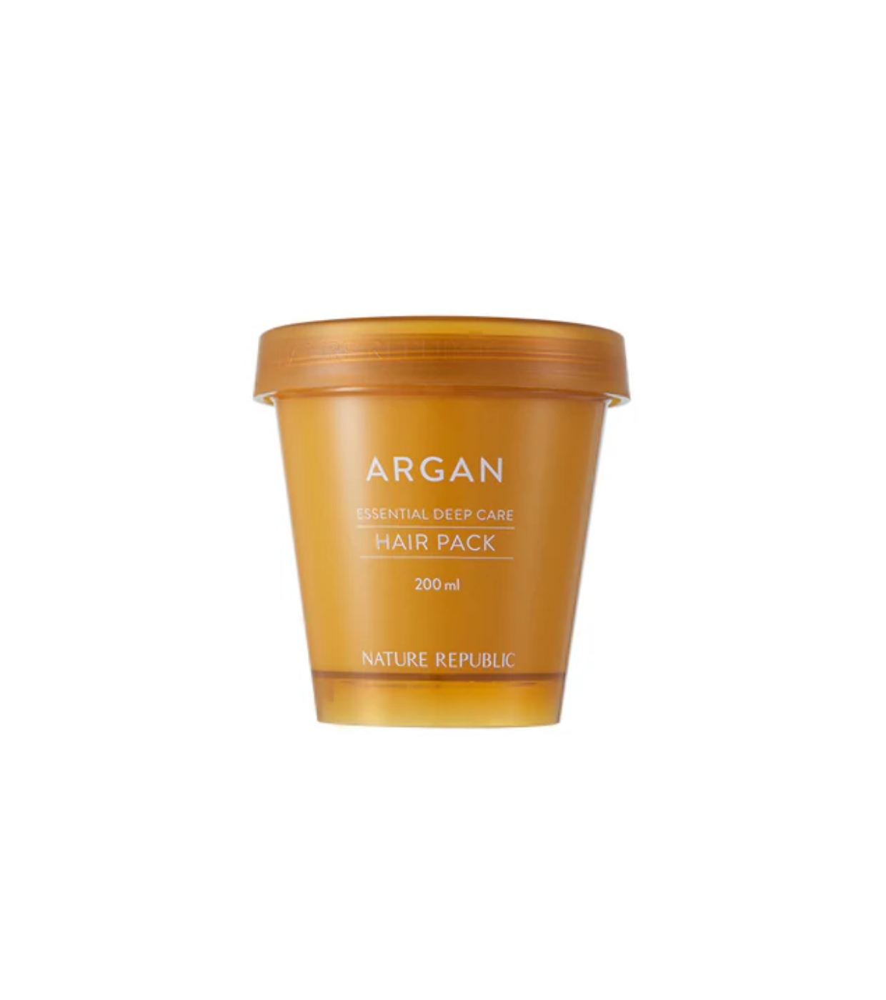 Revive dry, damaged, and dull hair with this intensive treatment Argan Essential hair mask from Nature Republic .