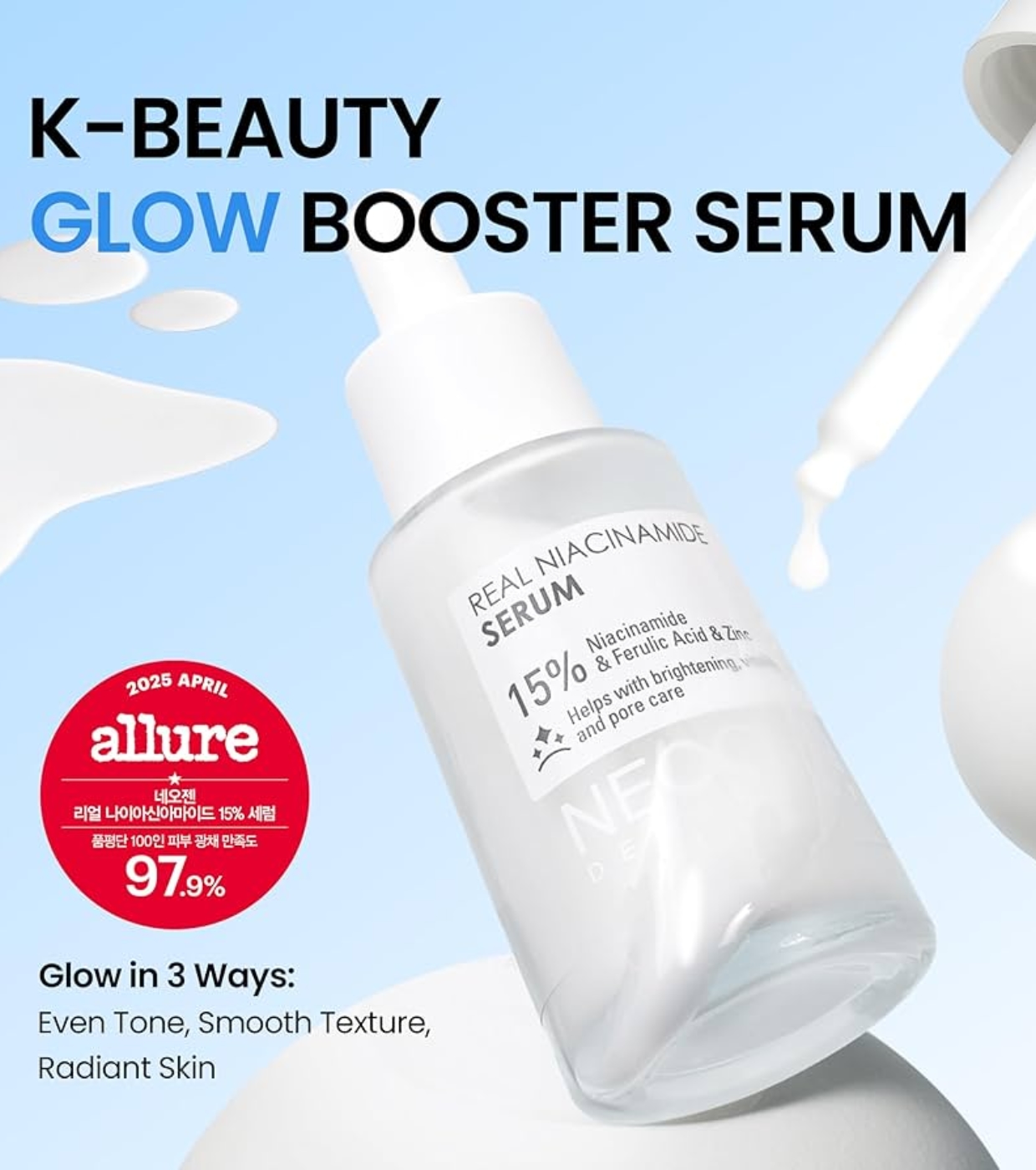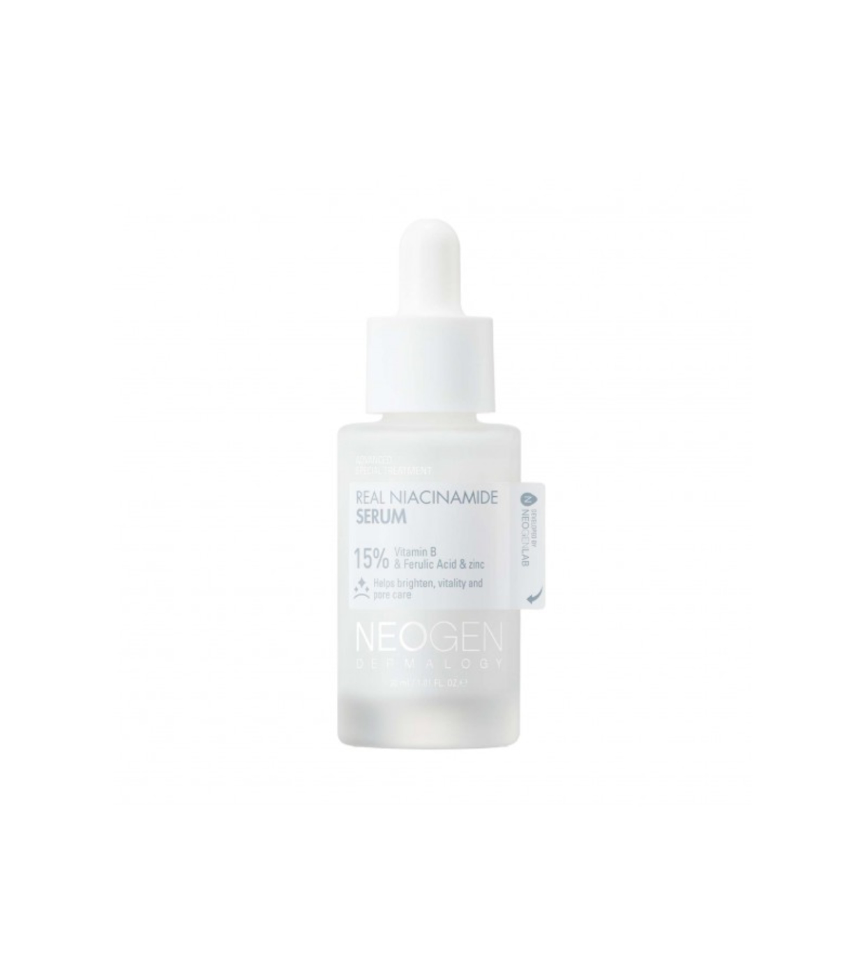 Dermalogy Real Niacinamide 15% Serum by Neogen is a serum formulated to help treat hyperpigmentation, uneven tone, and visible pores, while hydrating and soothing the skin.