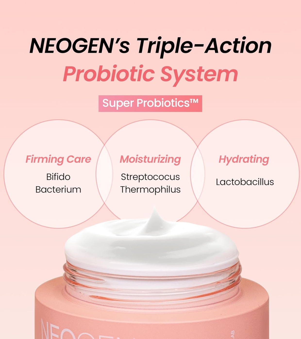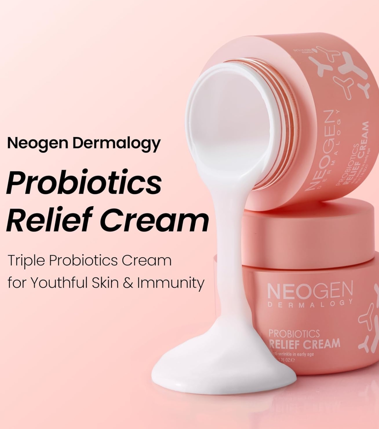 The Dermalogy Probiotics Relief Cream from Neogen is a soothing and moisturizing face cream specially formulated for dry, sensitive or reactive skin that needs to strengthen its skin barrier and regain balance.