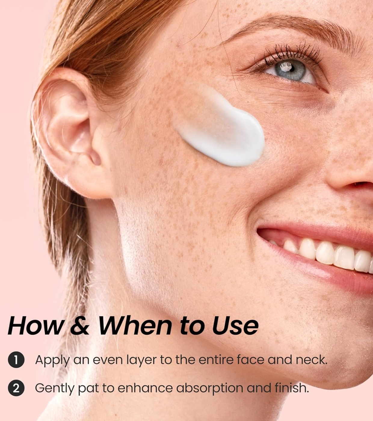 Apply a moderate amount to the face and neck. Massage gently until fully absorbed. Can be used as part of your daily morning and evening routine.