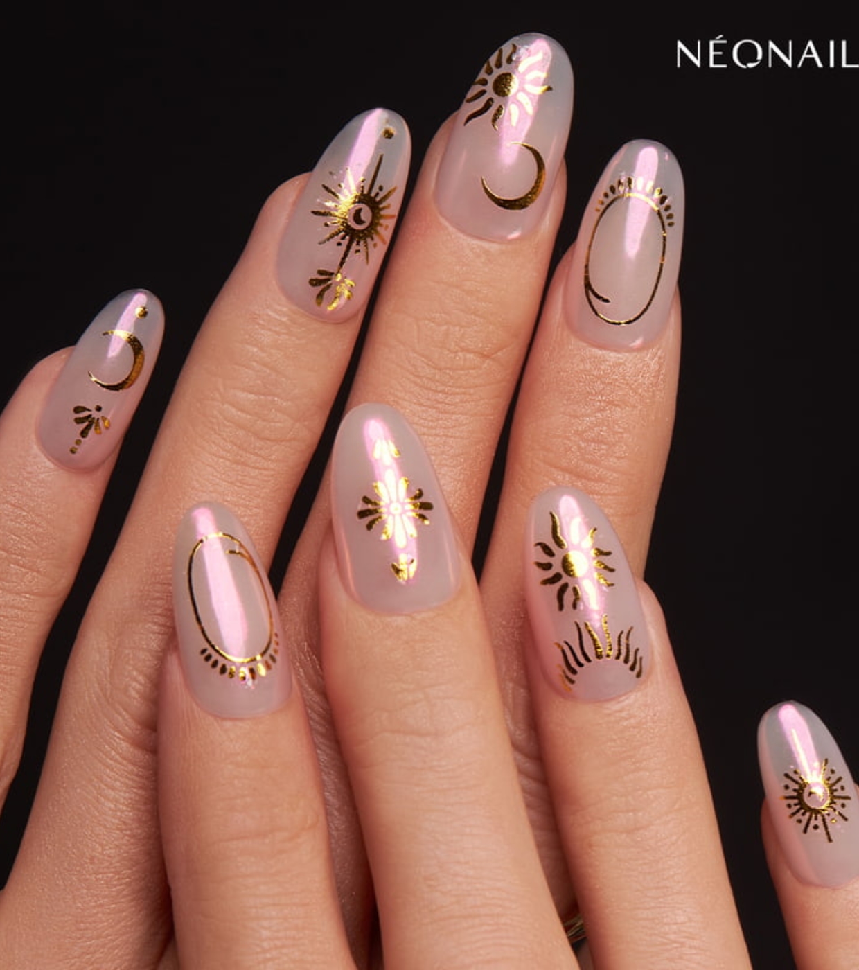 Using light permanent nail polish creates pearly designs, while dark colors transform into a metallic plate with dazzling details.