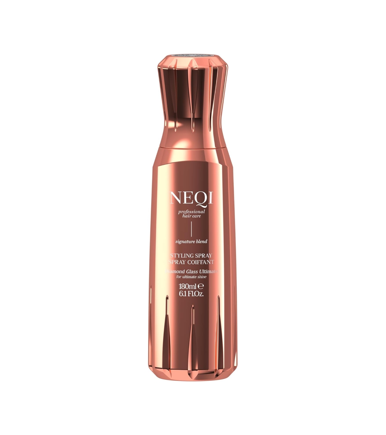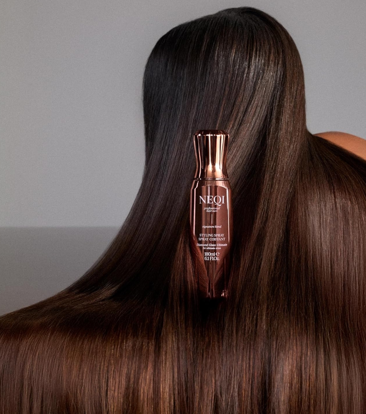 Get a “glass hair” finish with Neqi Neqi styling spray , designed to offer maximum protection against humidity and spectacular shine on all hair types.