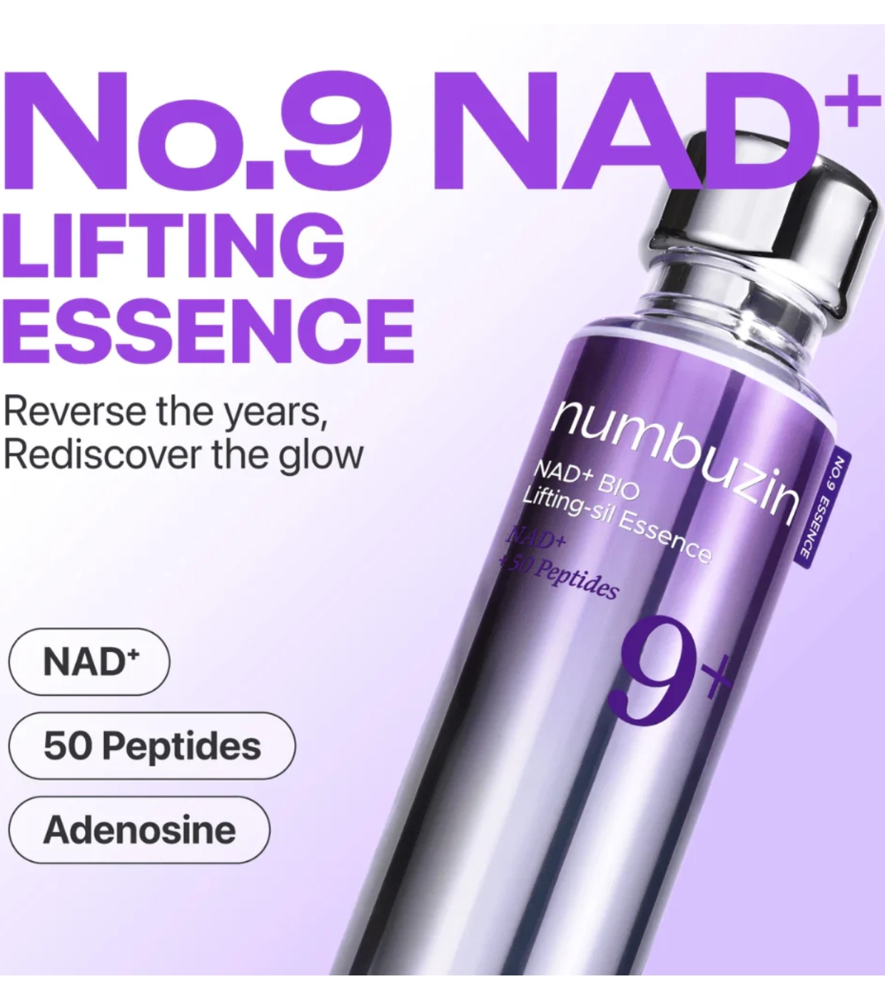 Numbuzin No.9 NAD Bio Lifting-sil Essence is a powerful anti-aging essence that combines science and nature to restore firmness, elasticity, and radiance to the skin.