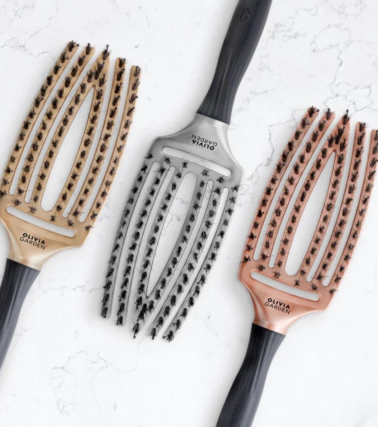 The Olivia Garden Fingerbrush hair brush helps detangle your hair easily and gently.