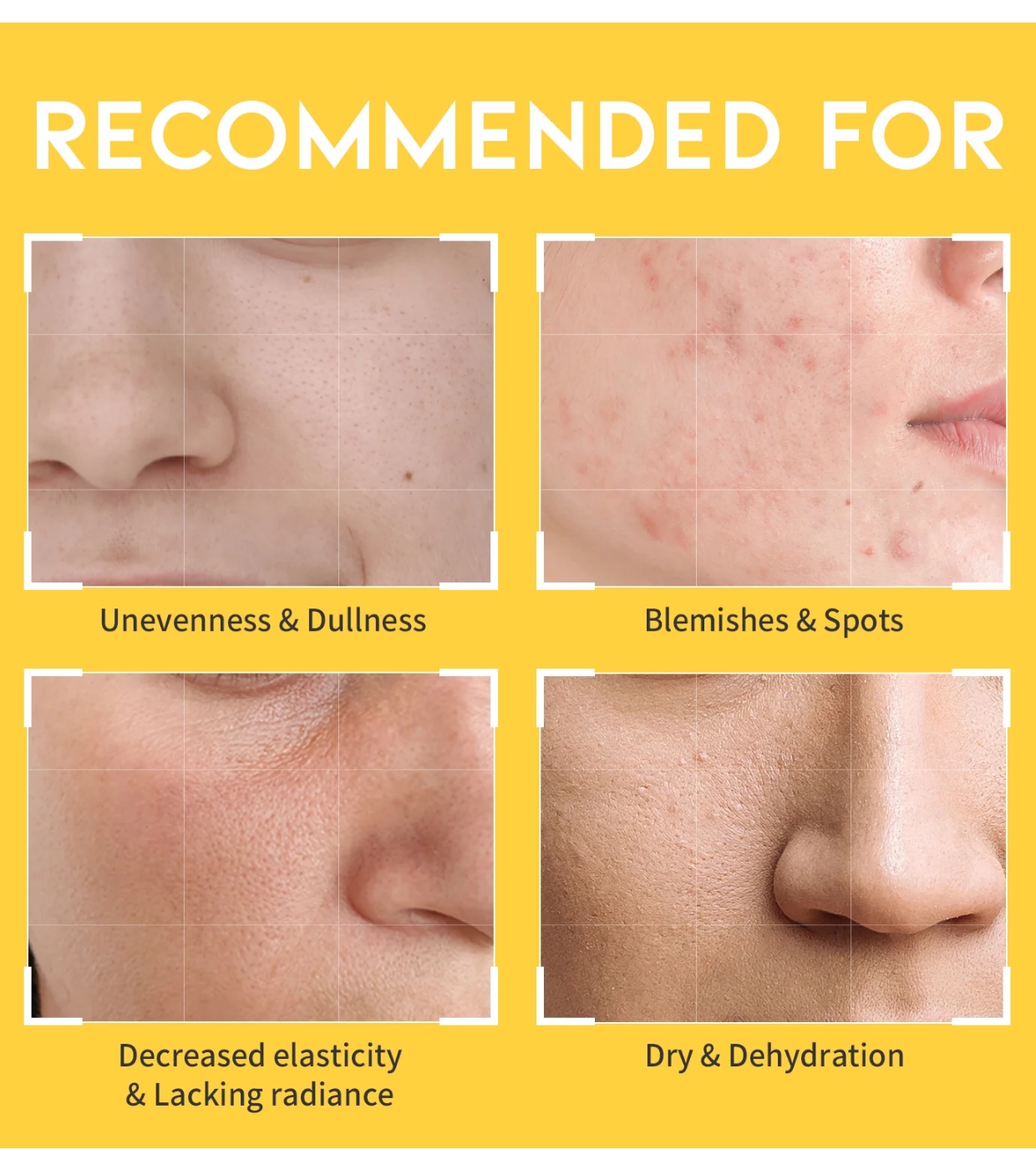 - Vitamin C – Brightens and reduces hyperpigmentation.