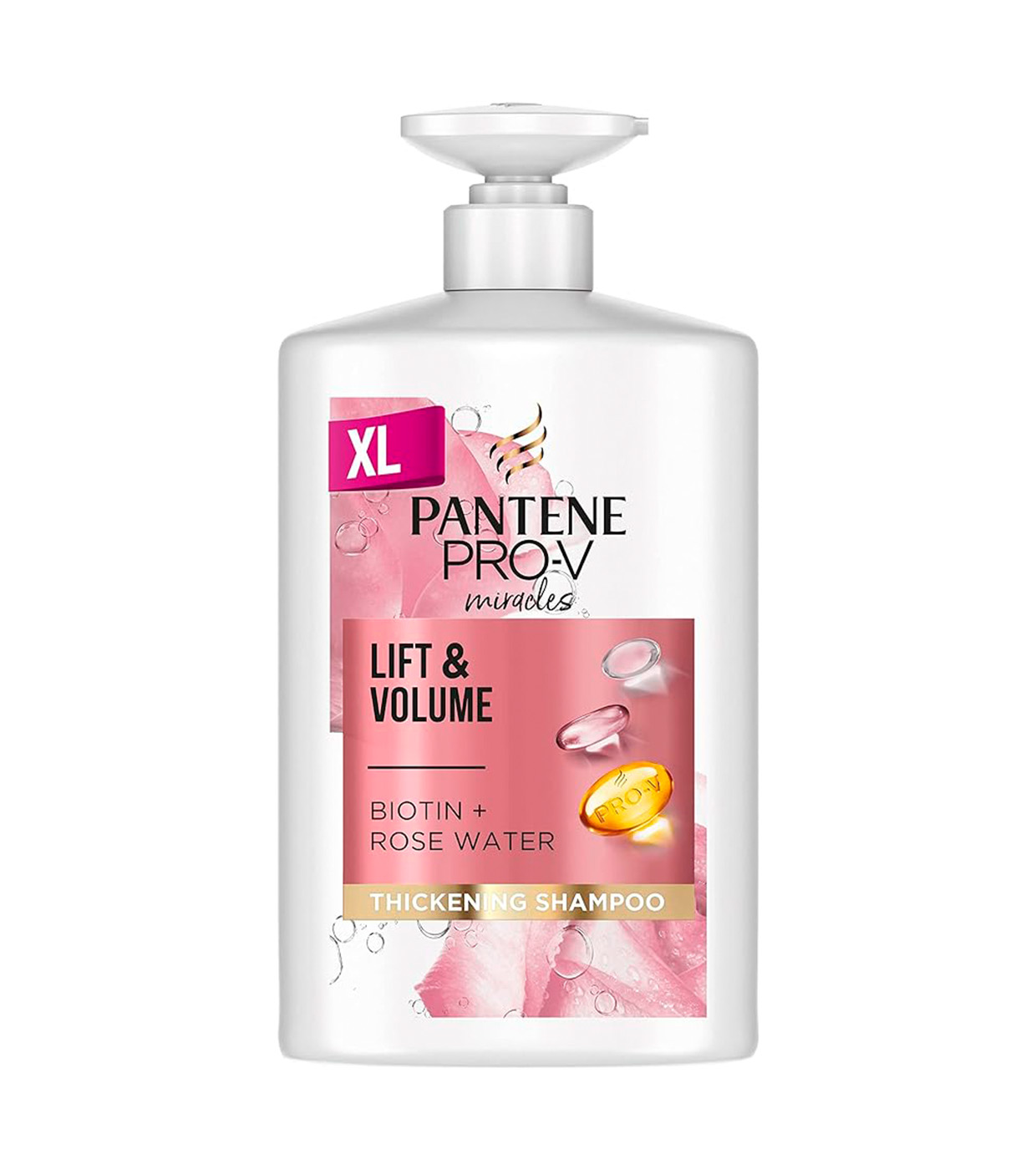 Pantene's Moisturizing and Volumizing Shampoo contains biotin, rose water and Pro-V complex.