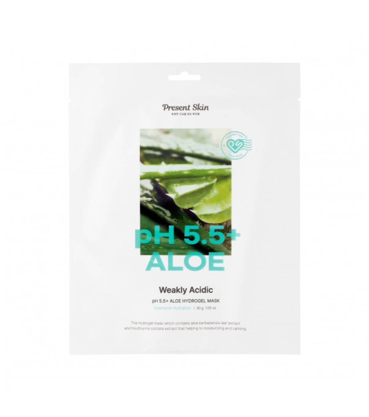 Ph5.5+ Aloe Hydrogel Mask's Present Skin is a Korean hydrogel face mask specially formulated for sensitive, dehydrated, or fatigued skin.