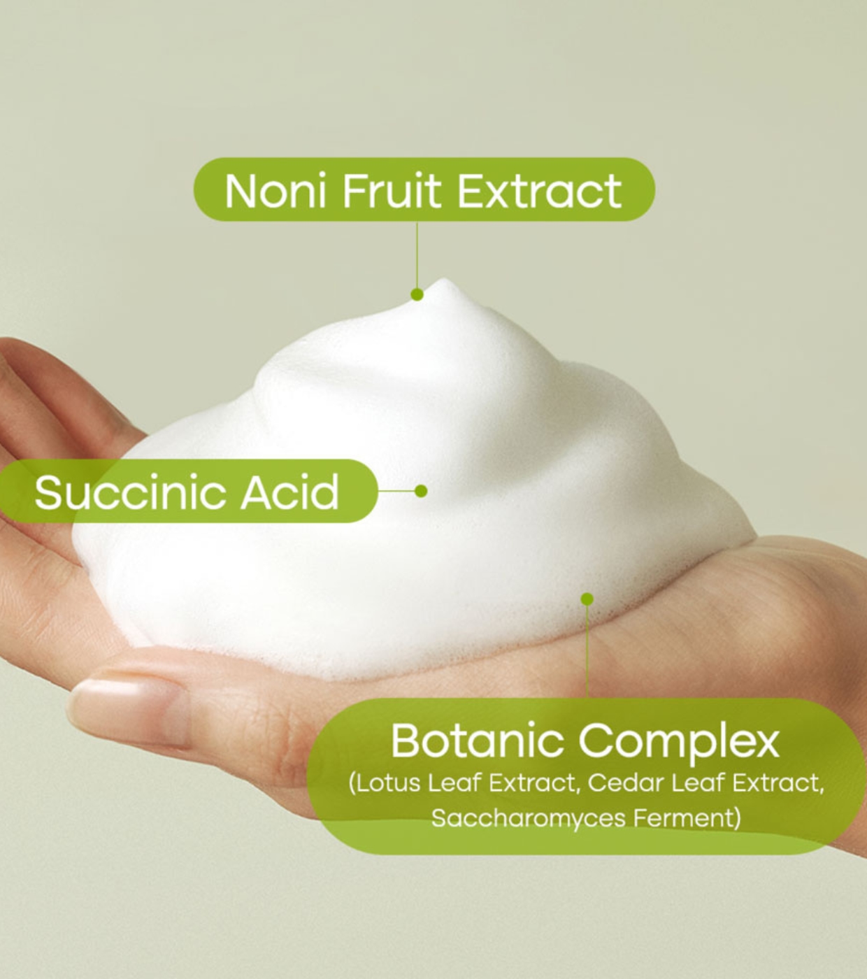 Water, Glycerin, Butylene Glycol, Dipropylene Glycol, Coco-Betaine, Lauryl Hydroxysultaine, Disodium Cocoamphodiacetate, Sodium Chloride, Morinda Citrifolia Fruit Extract, Sodium Methyl Cocoyl Taurate,Saccharomyces Ferment, Cryptomeria Japonica Leaf Extract, Nelumbo Nucifera Leaf Extract, Sodium Lauroyl Methyl Isethionate, Salicylic Acid,Hydroxyacetophenone, Pentylene Glycol, Hexylene Glycol,Ethylhexylglycerin, Allantoin, Disodium EDTA, Tromethamine,Malachite Extract, Coptis Chinensis Root Extract, Gluconic Acid, Pyrus Communis (Pear) Fruit Extract, Rosa Damascena Flower Water, Prunus Persica (Peach) Fruit Extract, Hedera Helix (Ivy) Leaf/_Stem Extract,Pimpinella Anisum (Anise) Fruit Extract, Vanilla Planifolia Fruit Extract,Cucumis Melo (Melon) Seed Extract, 1,2-Hexanediol, Caprylyl Glycol, Citric Acid