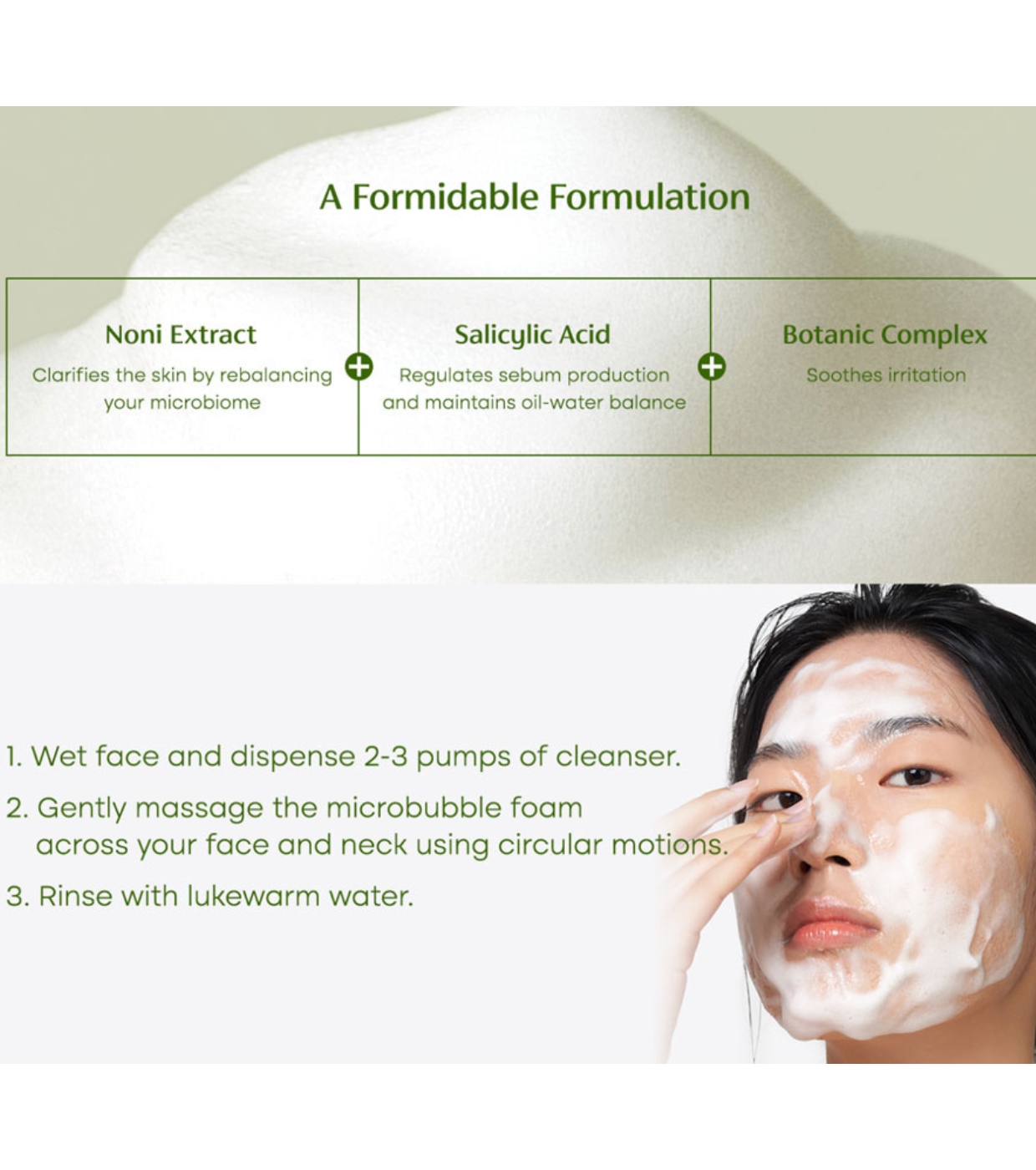 Its formula with salicylic acid deeply cleanses pores, removing impurities and dead cells, while noni extract regulates excess sebum and helps rebalance the skin microbiome to keep skin clear and healthy.