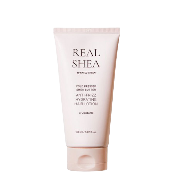 Rated Green Real Shea anti-frizz moisturizing hair lotion .